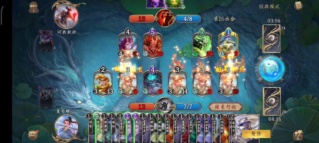 蟠桃和天兵配合百花羞,狼头单刷水土大量囤牌,水龙吟把怪打回手上龙威。菩提祖师可以囤十几张截心。15点攻击的天兵门派稳定回血鬼火加强了这个卡组