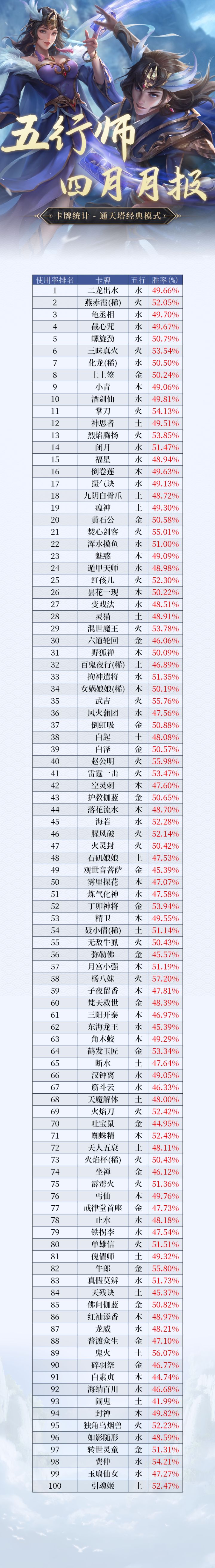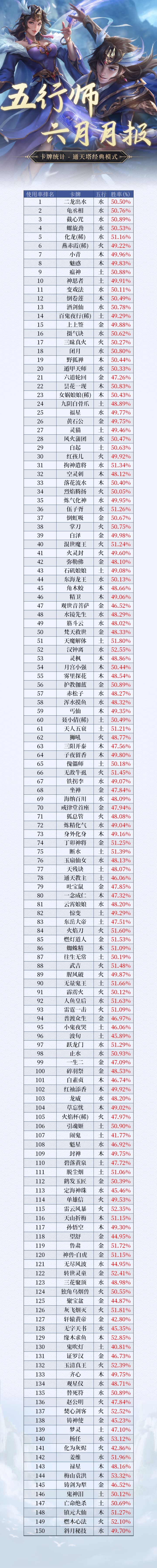 本月报仅统计上过天尊的玩家对局。通天塔仙魔道场
