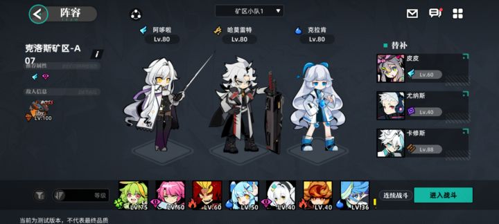 有点靠运气毕竟算是逃课 需要保持鱼王的debuff,双c套装可以换异常套增加容错 BOSS的第一回合前排必须送掉,不然会有速度up攻击up 第二回合会增加暴击率和攻击(这个时候替补哈莫➕buff) 第三回合靠着免疫免伤(bosa有概率a两下) 第四回合切人,塔拉不需要练度1级(魂印越高越好) 第五回合会有aoe替换前排肉盾(鱼龙王debuff不能断) 然后boss就继续➕buff循环。 总的来说,掉率太感人了,总体角色的养成跟主线进度不搭配。 举个例子:竞技场可以换角色突破素材,但是不提前刷突破素材主线推不动,还有那个垃圾巅峰,我都推完5-12的练度了,每个月才能换组就给2x的刻文?打发要饭的?测试就这几天,我能去第二组?就刻文那个升级素材,累死人好吧。 要不是测试服送了这么多通行证我都不敢想,算了下我这练度按照目前的养成方法,我不到第七天结束我都打不到这里。 主线我是懒得推,奶妈也就小迪和始祖灵兽能用了。送的结晶倒是挺多的,补剂也勉强,获取途径也是偏肝一点。 不能说繁琐吧,就是不匹配,就好像是 p:主线推不过了 q:那你打竞技场突破升级 p:我没解锁啊 q:那你推主线啊 p:我主线推不过打不动啊 q:那你去打竞技场刷高等级的刻文啊 p:xxxxxxxxx 掉落太少了太少了太少了!!概率太低了太低了!!!
