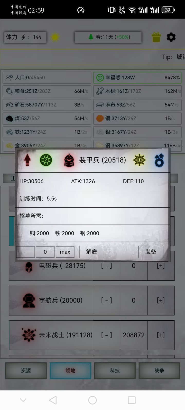 二半夜睡不着,总算把步兵觉醒完了。目前进度离2048差1万规模,陆续更新一下兵种神练战损,注意属性为重置后的!!!注:所有打的都是用500倍神速 和卡扫荡打的注:装甲装备有问题哦!我用的加特林,你们自己换迫击炮吧!懒得改了!2.20更新魔术2.21更新宇航2.21更新电磁2.23更新藤甲