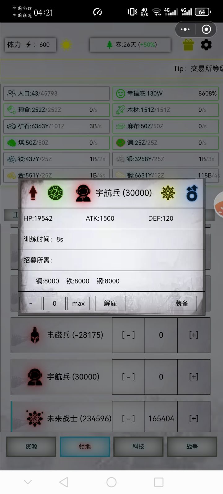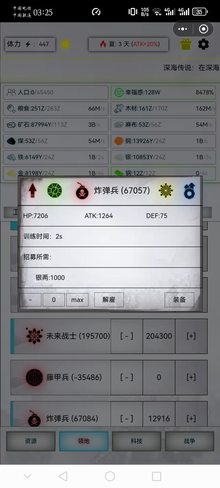 精20,出战30000,战损21425步枪纳米,丹药600-60-30-30,蒸汽70-697-15扫荡
