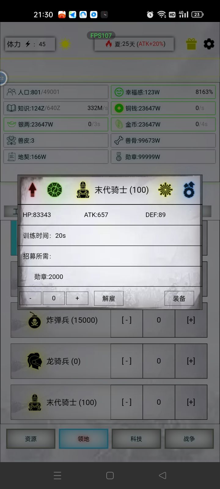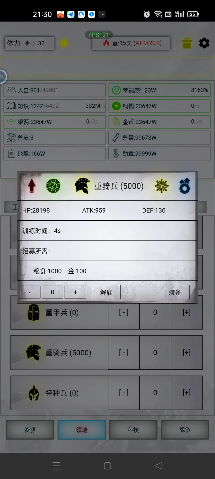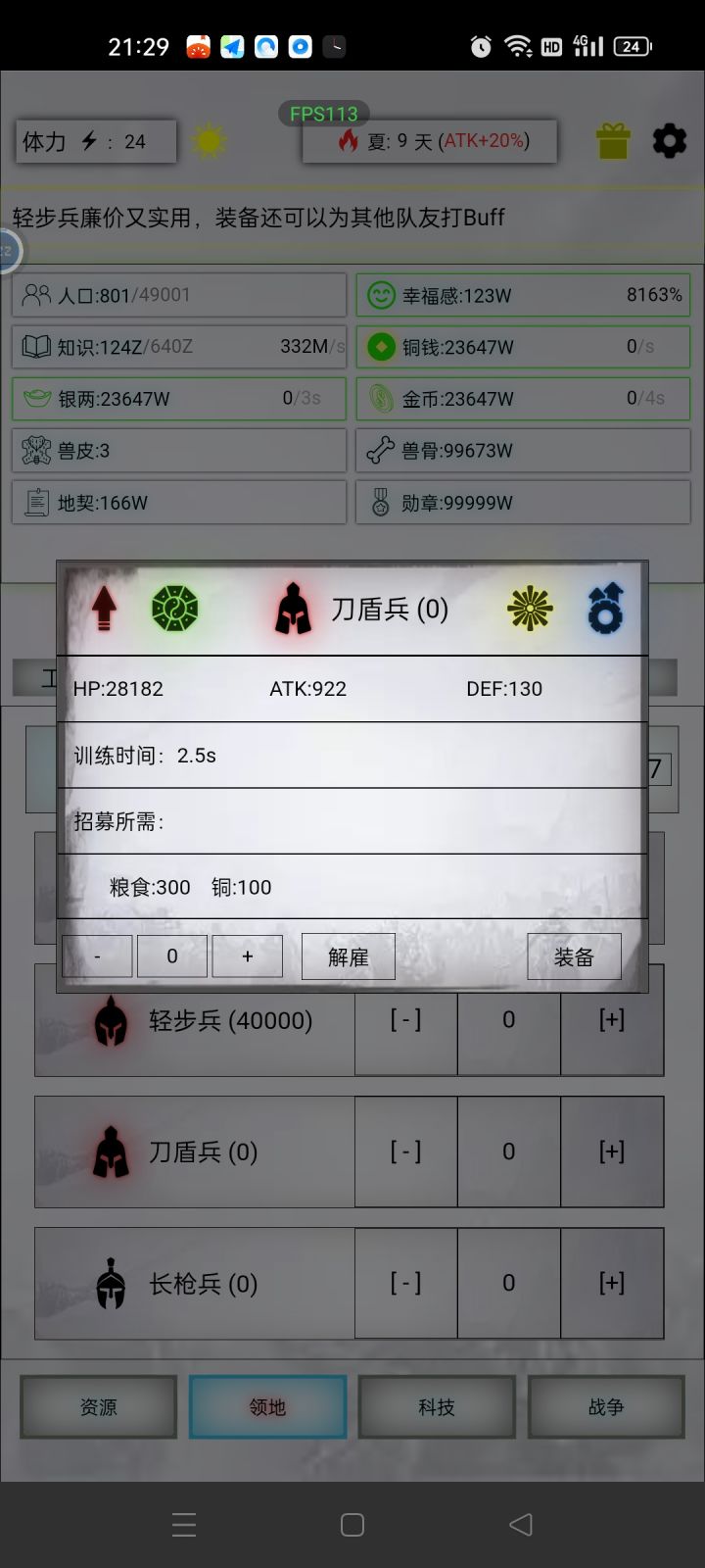 有不少人要开局攻略。这游戏挺简单的主科技开局4人口保持食物度不负的前提下主升科技就好。科技点上限不够了就做仓库攀玩科技游戏才正式开始每次扩建后在扩建相同的地契会增加。注意下村庄1人口政策全民皆兵。小镇2人口政策幸福小镇。可以弄几个温暖万家毕竟4点幸福也就那样。城市4人口后面一个科技能解锁城市政策会有个人口大国另外加3人口。科技攀满了后人口就没用了全换帝国主义拉军队规模。兵种前期就用轻步兵礼包码送的材料可以直接做出石中剑基本军队规模起来低杀戮都可以打。后期龙骑,特种按个人喜好选一个培养。个人感觉龙骑适合打郊外。特种适合打外域。新兵种装备材料还没出所以先放一边。