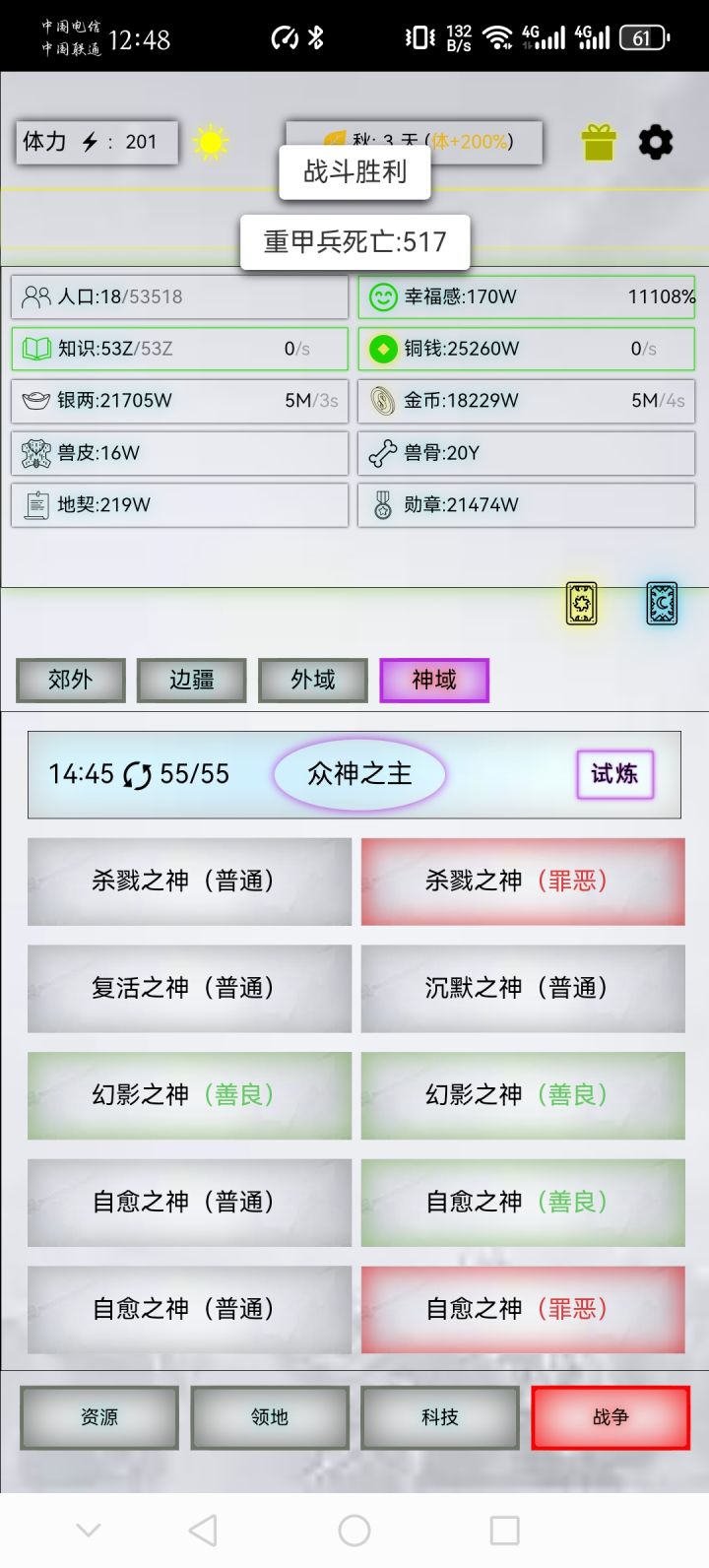 3.15更新至所有兵种 重要通知!!!3.15更新了211版本!!!“简战”后打神练特别好打,999以内末代都打过了!!!!!没上传的是因为上传上限了!!重点:我的进度是2048开始打的,所以属性对不上,对对进度。1、注意属性为重置后的!!!2、所有打的都是用500倍神速和卡扫荡打的,朱雀、玄武、麒麟都是满了(有白虎的算白虎,没有的就是正常满)3、装甲装备有问题哦!我用的加特