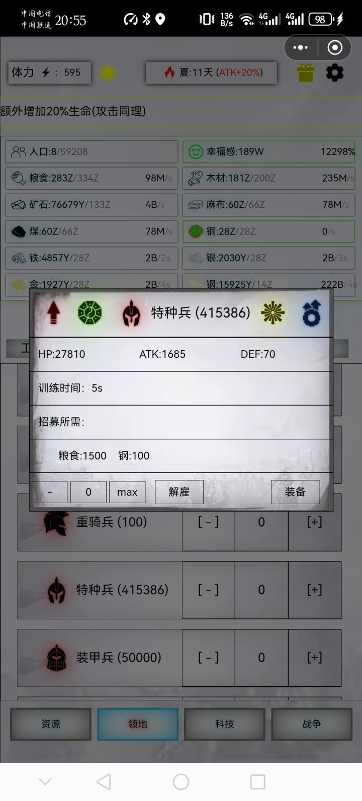 精50,简战2000%,出战20000,战损563永恒钢甲,丹药300-30-30-30,蒸汽31-523-10扫荡