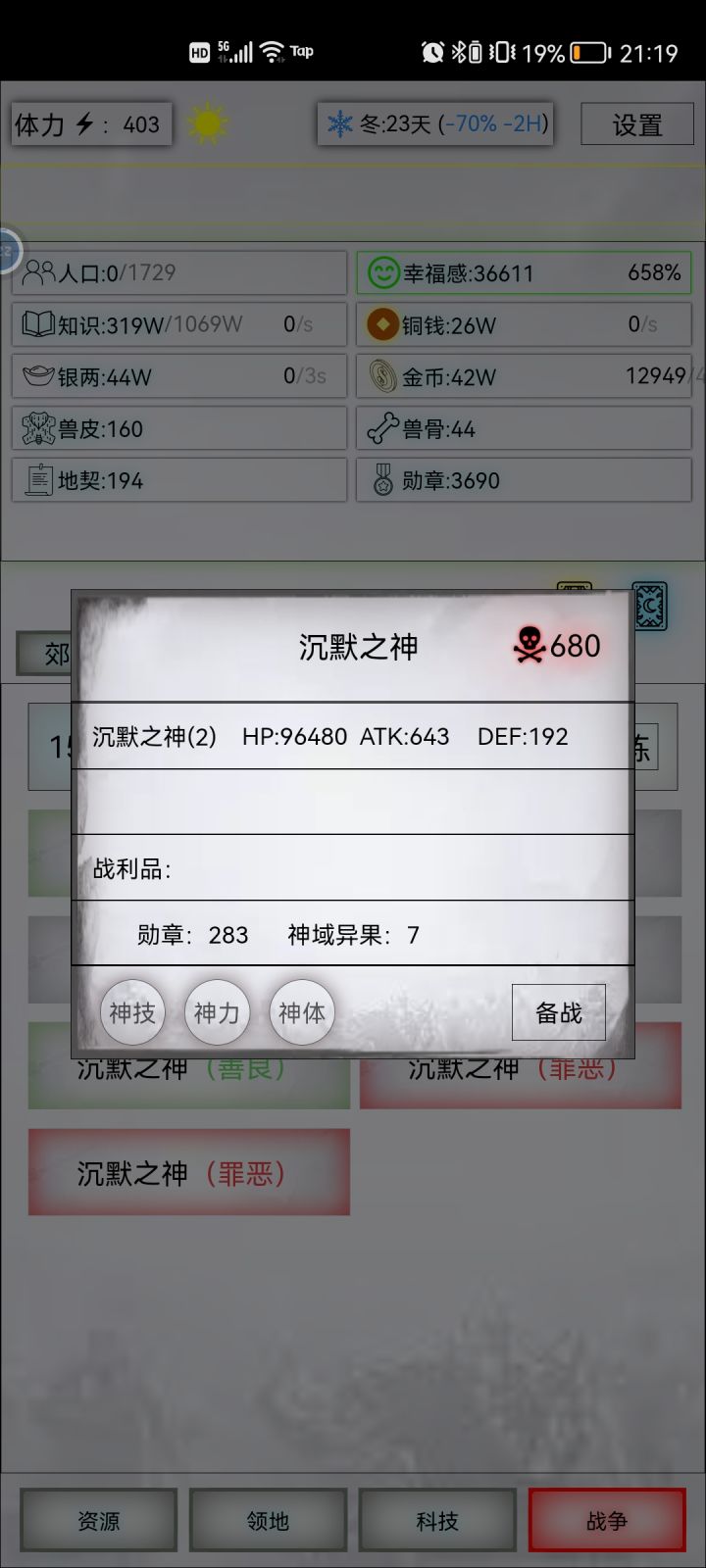群主说水一下就行了,前期轻步献祭后面放几个龙骑收割就行了(后期轻步献祭,刀盾减防),新的野兽没出现就怼着前面最新的打,打多了后面的野兽就解锁了(应该是和杀戮值有关),丹药的话,轻步吃加血的就行了(兽杀献祭最大化的800血),加成其他属性的丹药先留着自己挑一个兵种培养(目前建议特种),神器看广告就行了,看的多了就到手了(滑稽)至于神域后期一些的看大佬攻略或者加群讨论吧,溜了溜了!睡觉!