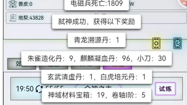 仅从4e神主开始,更早的无记录,可参考梦里大佬的精华帖特别注意:扫荡时要先上刀盾后上轻步,能给主力兵种省战损。4e神主(1.0.126)80石破轻步(封技)1110鱼源刀盾(削甲)500号角重骑(加攻)2309电磁(主力)合3999精兵20夏天8e神主的第一次尝试(翻车)750兽杀轻步2160鱼源刀盾120号角重骑3969步枪电磁合6999(精兵0刚好这个数,数据无跨