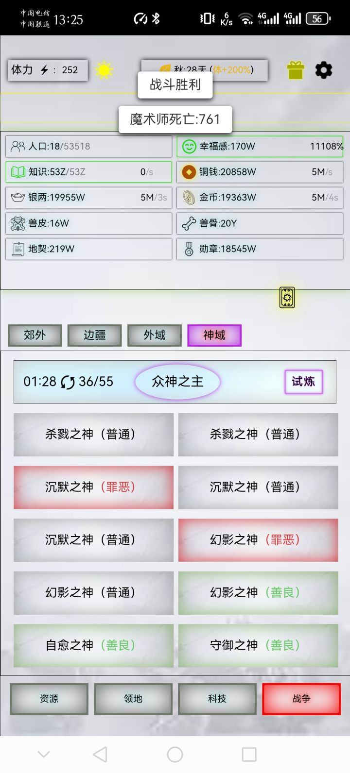 首先,此数据并非完全由本人记录,部分数据来源于群佬 蛀烂霉橘 ,下文的神练bug同样由蛀烂霉橘佬提供先说可全恶魔打满20阶的,以下数据参考均是兵种属性已毕业的步兵全恶魔最后一阶战损约20w。装备王权生旗,卡顿较为严重刀盾全恶魔最后一阶战损约16w。只带反甲无武器长枪全恶魔最后一阶战损约40w。只带火焰枪不穿甲重骑全恶魔最后一阶战损约21w。带神锋加号角特种全恶魔最后一阶战损约3.5w。