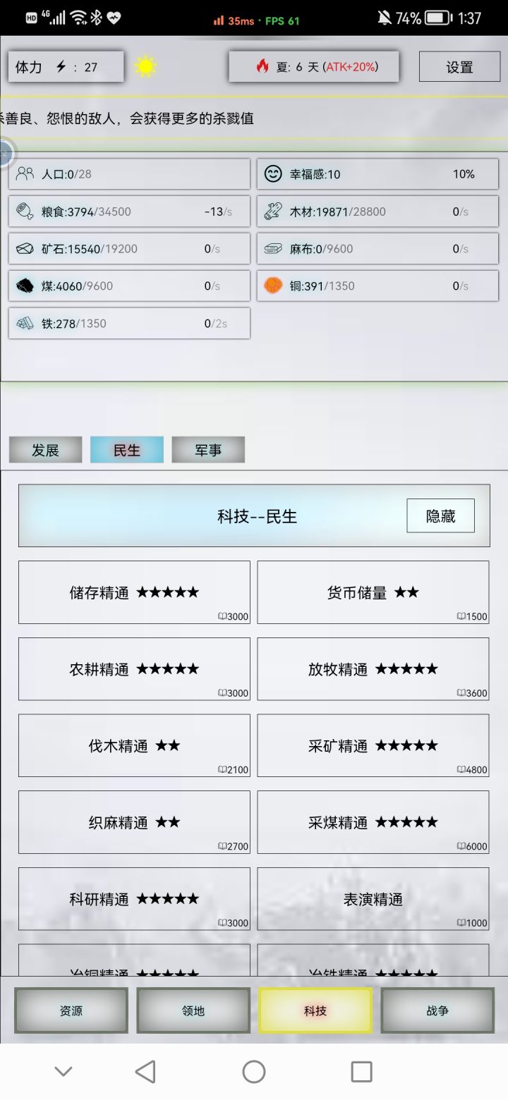 点开这个游戏后,看着如此简陋的界面与交互相当惊奇,忍着玩了五天左右,中间也有过对作者才华的赞赏,比如兵种搭配、自动化等,需要主动干预定时升级,这个互动参与感就形成。然,形势直转而下,奇奇怪怪升级配套物品层出不穷,需要去论坛找手册才知道,啥玩意是啥玩意,刚知道要看几十次广告才能换个啥,转头就又出来了新物资,不知上哪弄……典型的智商筛选机,挖无数的坑,一坑刚过,一坑又起,却再没可能给予可自动化的灵动…