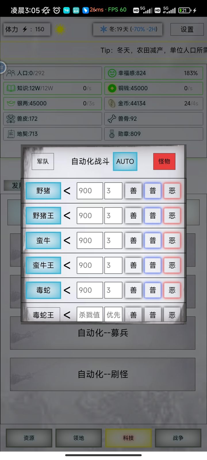 有bug,金子那一栏,经常自动归零。。。这个bug不修,金子仓库和需要金子升级的民生就升级不了。