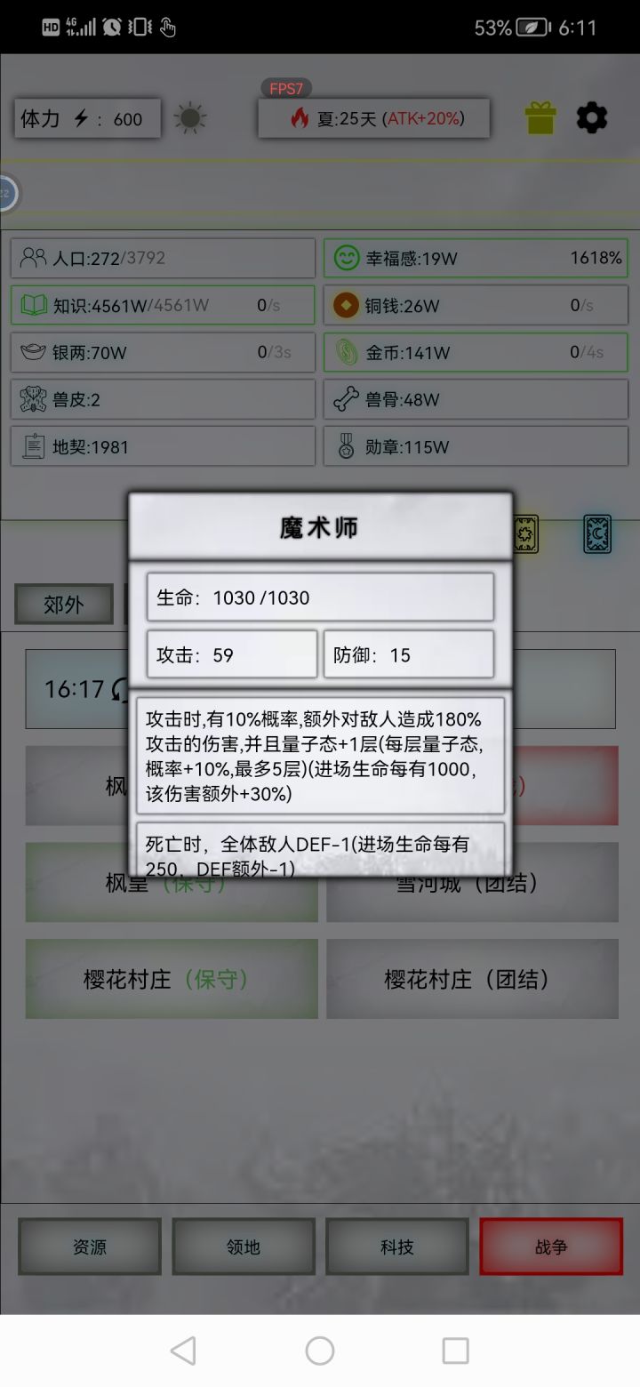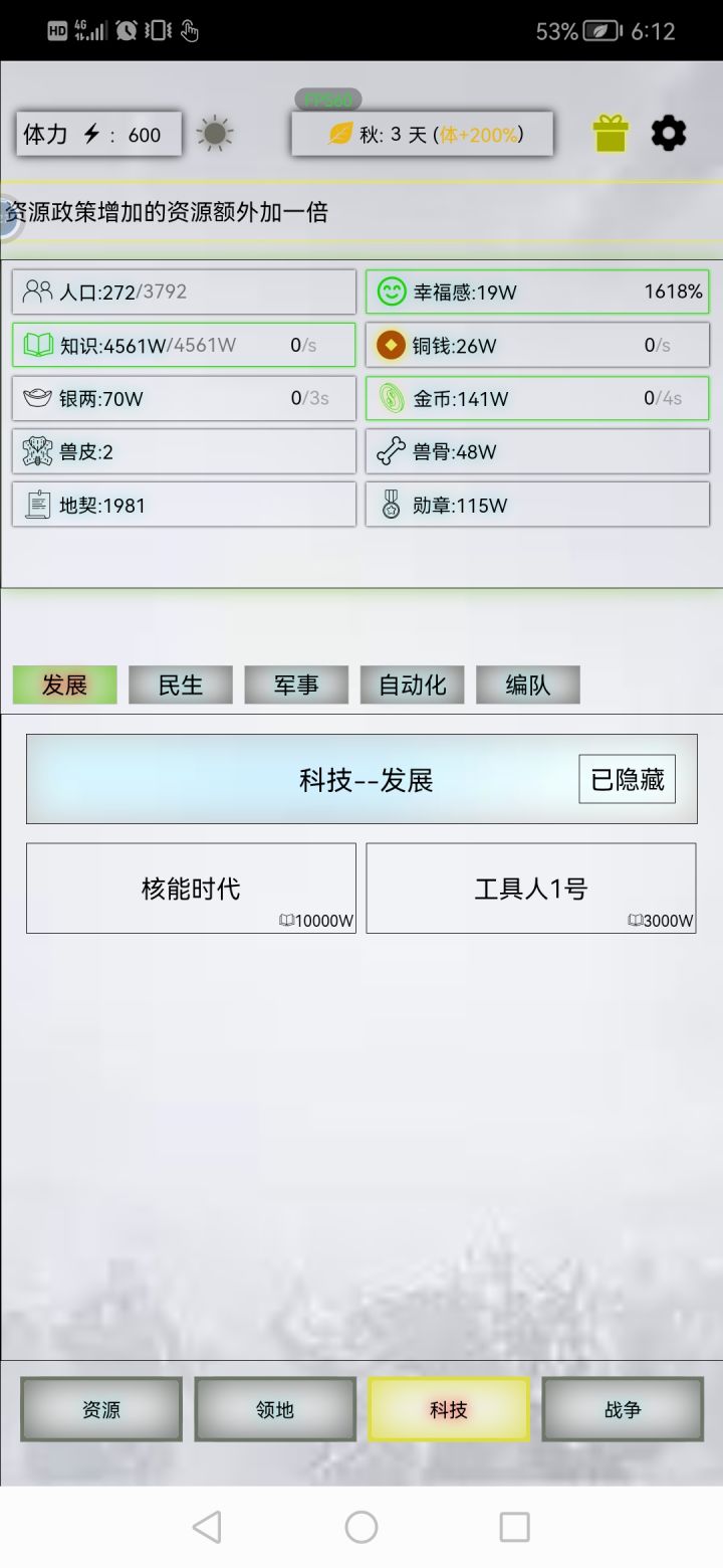 每次太久不上号,一登录就是粮食紧缺的状态,实际上人都是够的,幸福感也足够