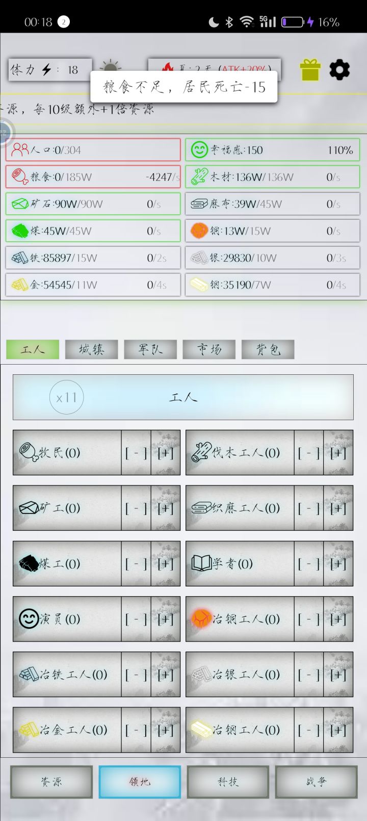 玩到一半卡bug了,冶金工人数量一直是0,增加了也会回到0。