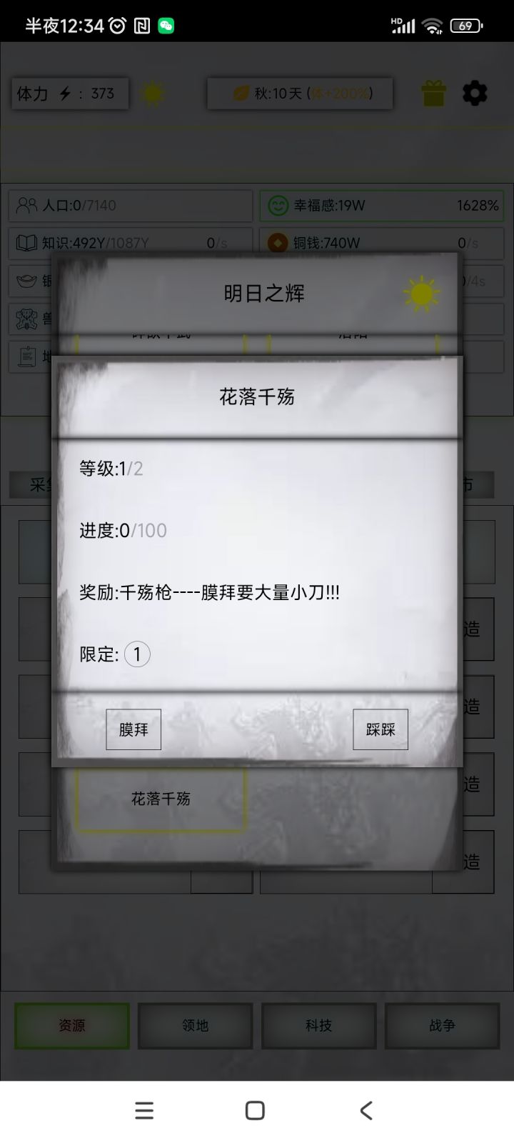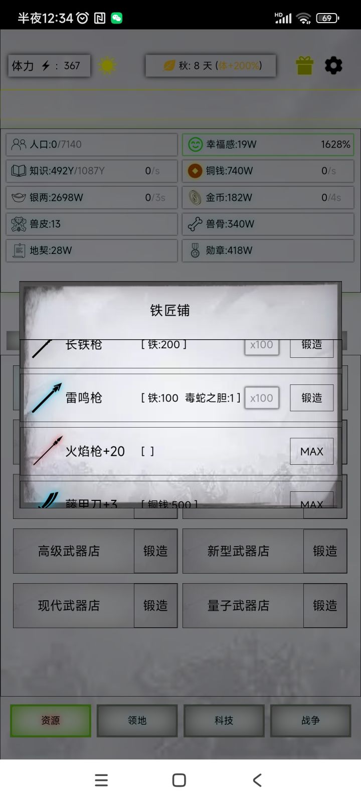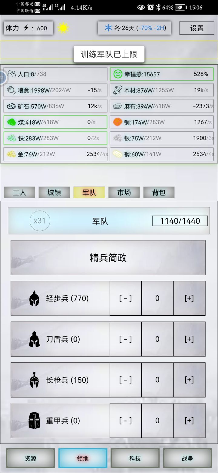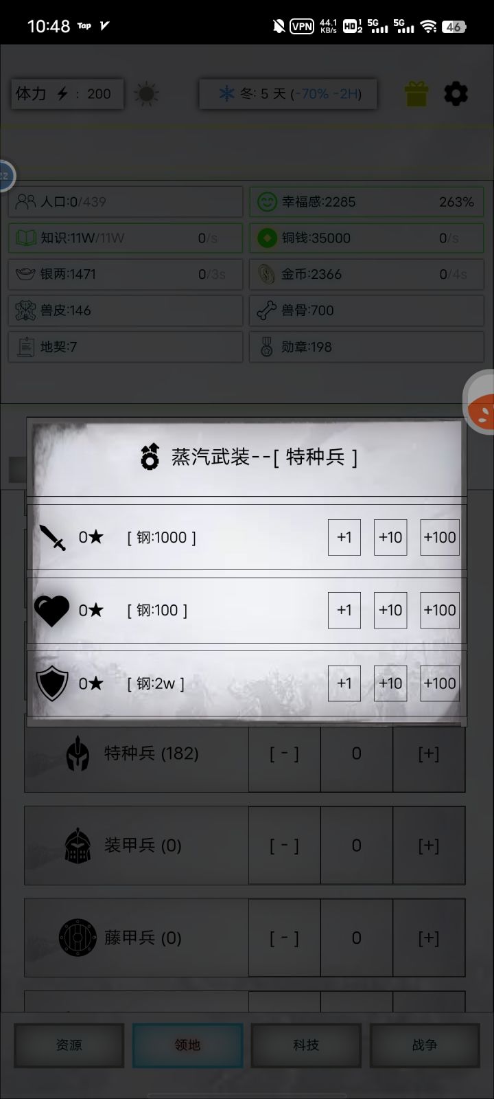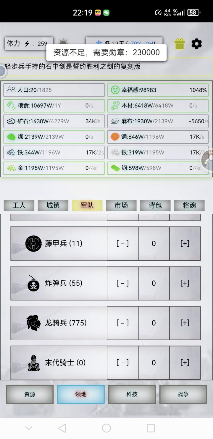 这个蒸汽武装不怎么明白,怎么点击了资源扣了,不见升级