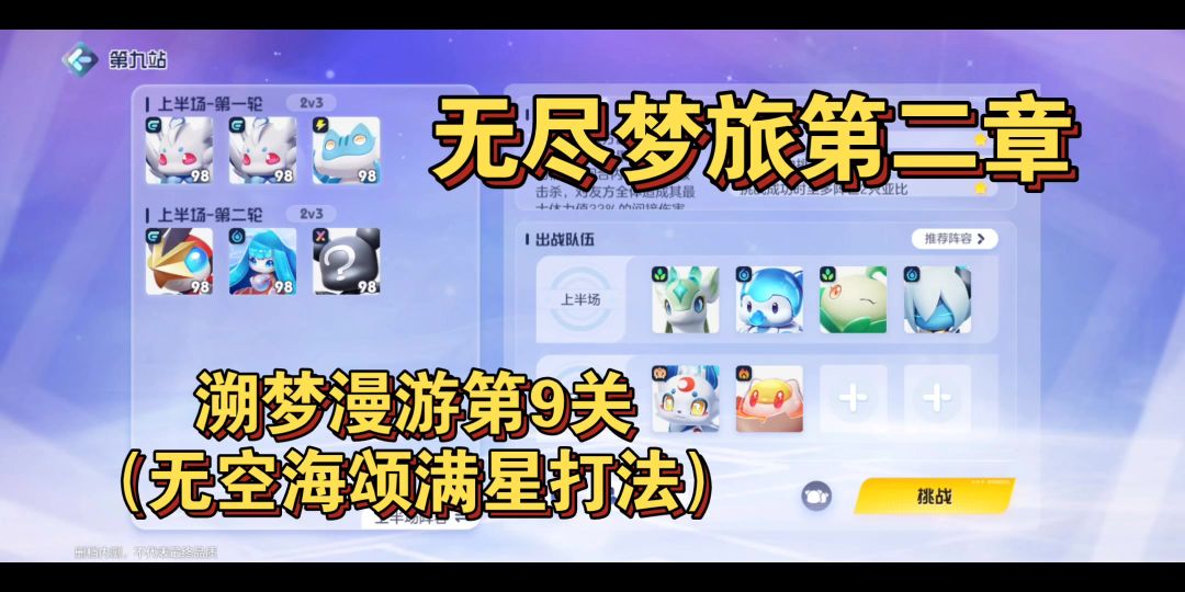 【奥拉星2】无尽梦旅第二章-溯梦漫游第9关(无空海颂满星打法)