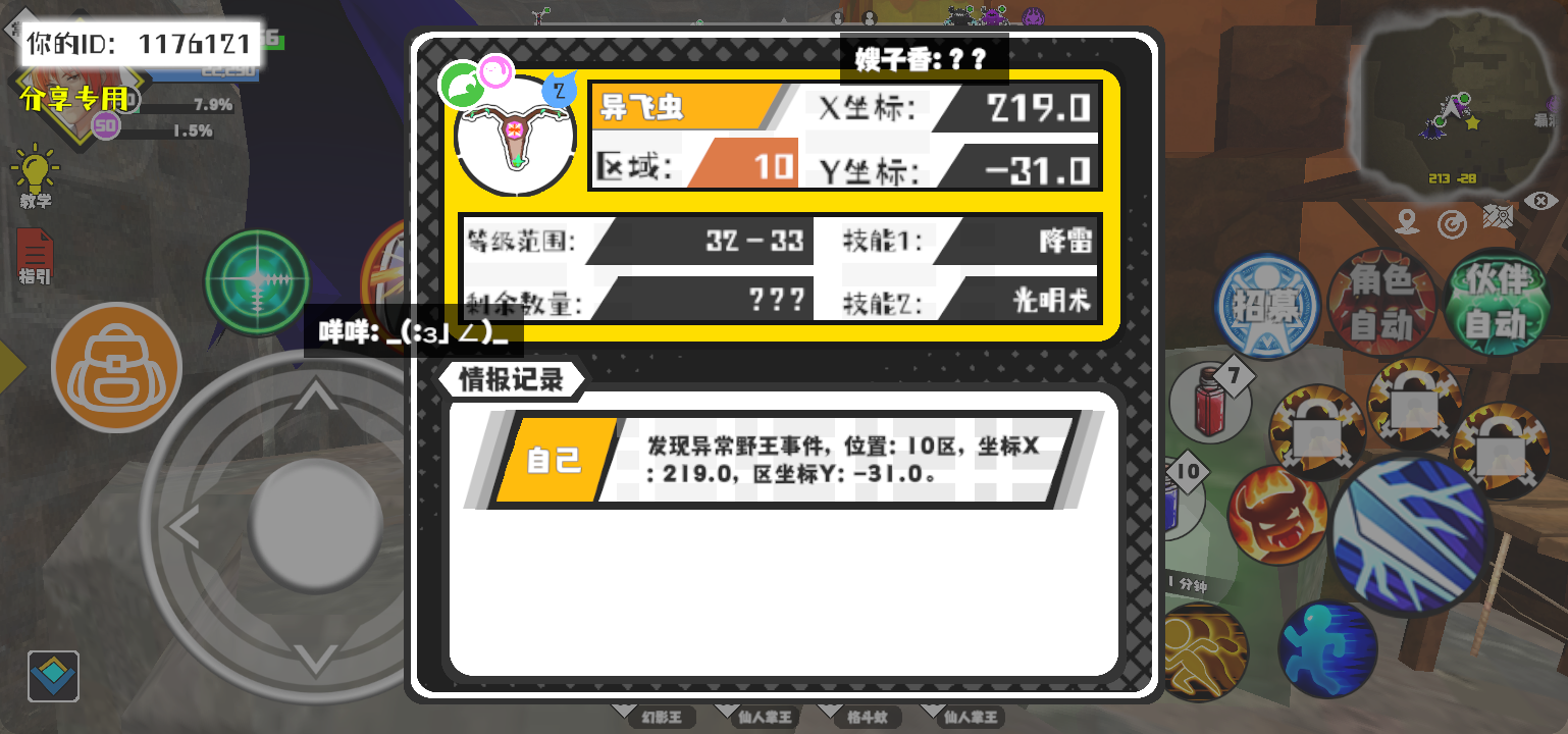 幸运时刻分享! 【野王异常出没】1月13日上午9点 - 异飞虫【强度2】 【10区】 【X:219.0, Y:-31.0】#超数据世界