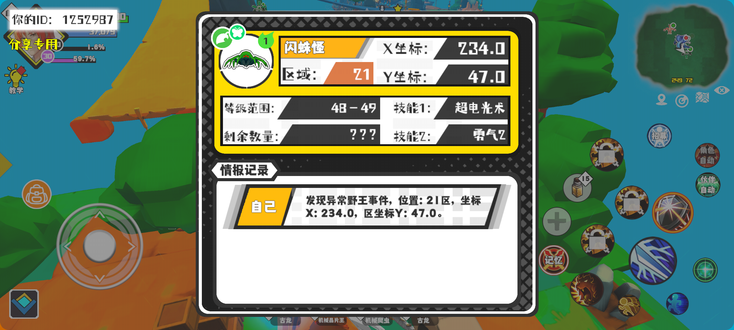 #超数据世界 幸运时刻分享! 【野王异常出没】12月7日下午7点 - 闪蛛怪【强度1】 【21区】 【X:234.0, Y:47.0】