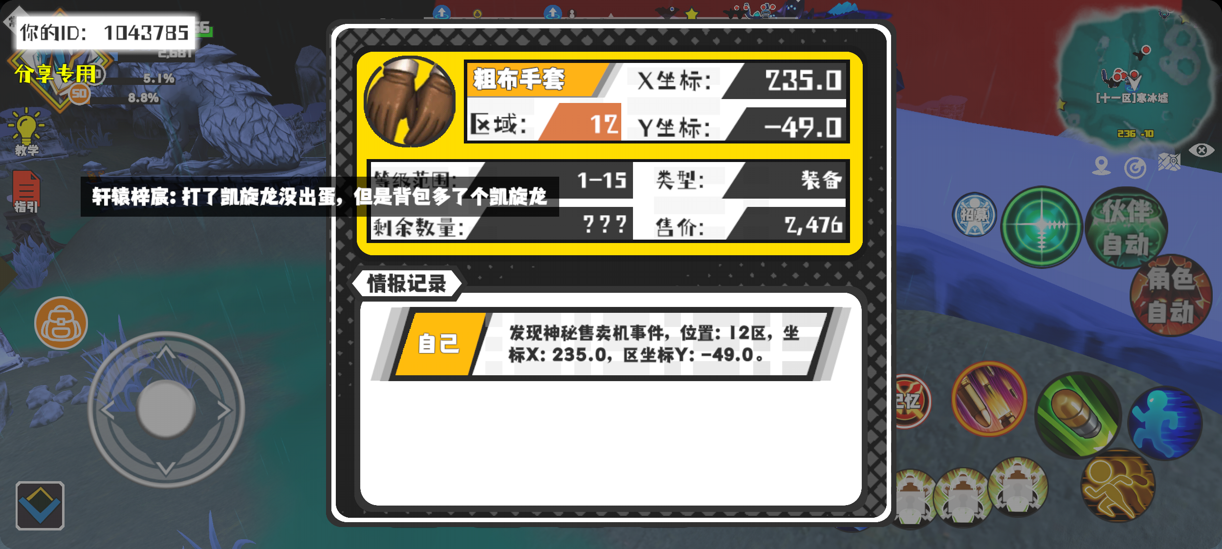 幸运时刻分享! 【神秘售卖机】12月7日下午11点 - 粗布手套【1-15级 】【稀有度:神秘】 【12区】 【X:235.0, Y:-49.0】#超数据世界
