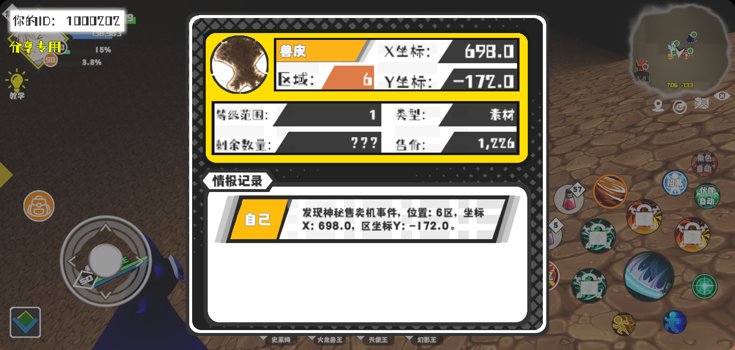 幸运时刻分享! 【神秘售卖机】12月7日上午10点 - 兽皮【1级 】【稀有度:精良】 【6区】 【X:698.0, Y:-172.0】#超数据世界