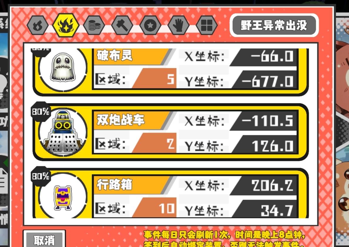 幸运时刻分享! 【野王异常出没】12月7日下午2点 - 双炮战车【强度4】 【2区】 【X:-110.5, Y:126.0】#超数据世界