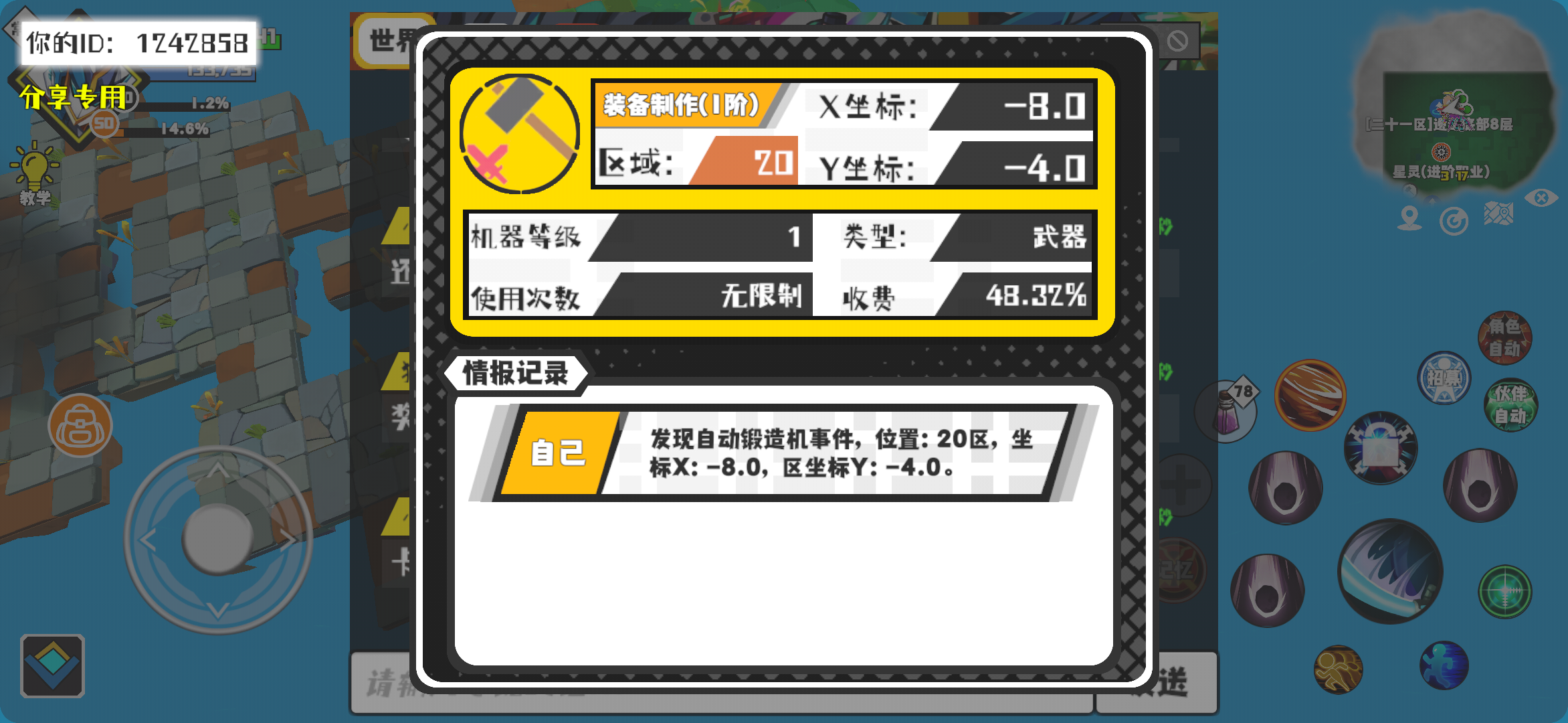 #超数据世界 幸运时刻分享! 【自动锻造机】12月7日下午5点 - 装备制作(1阶)【1级机器】 【20区】 【X:-8.0, Y:-4.0】