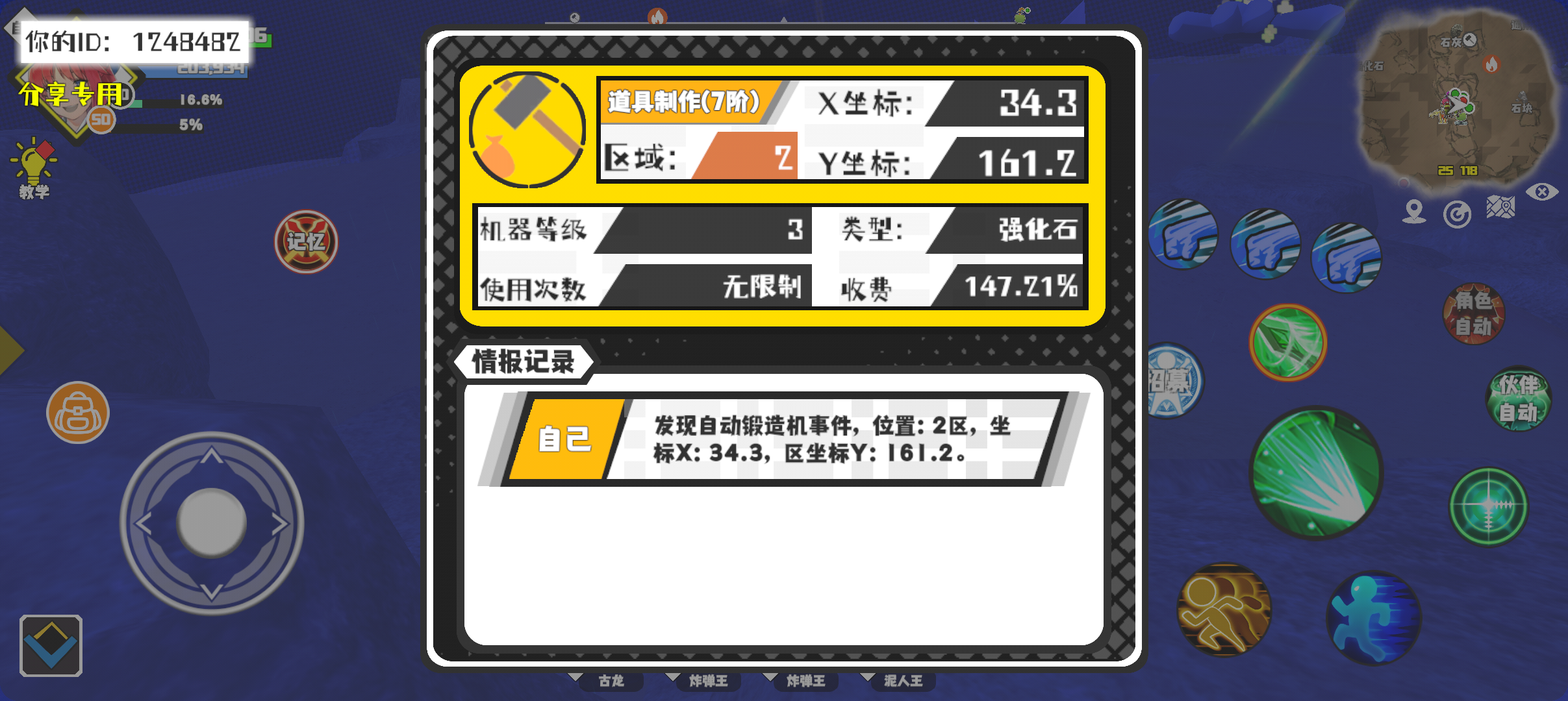 幸运时刻分享! 【自动锻造机】12月7日上午11点 - 道具制作(7阶)【3级机器】 【2区】 【X:34.3, Y:161.2】#超数据世界