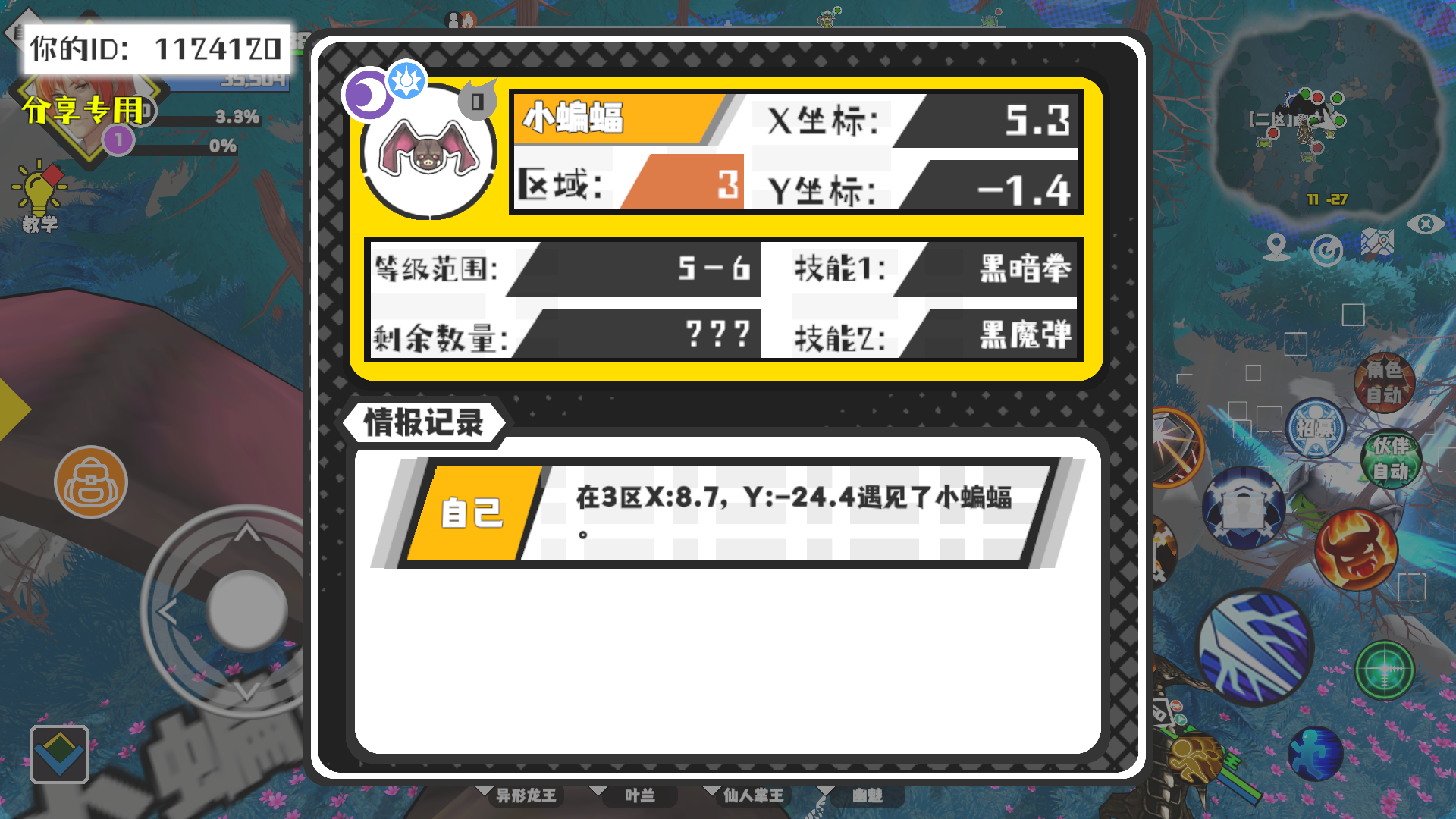 #超数据世界 幸运时刻分享! 【魔物异常出没】12月6日下午11点 - 小蝙蝠【强度0】 【3区】 【X:5.3, Y:-1.4】