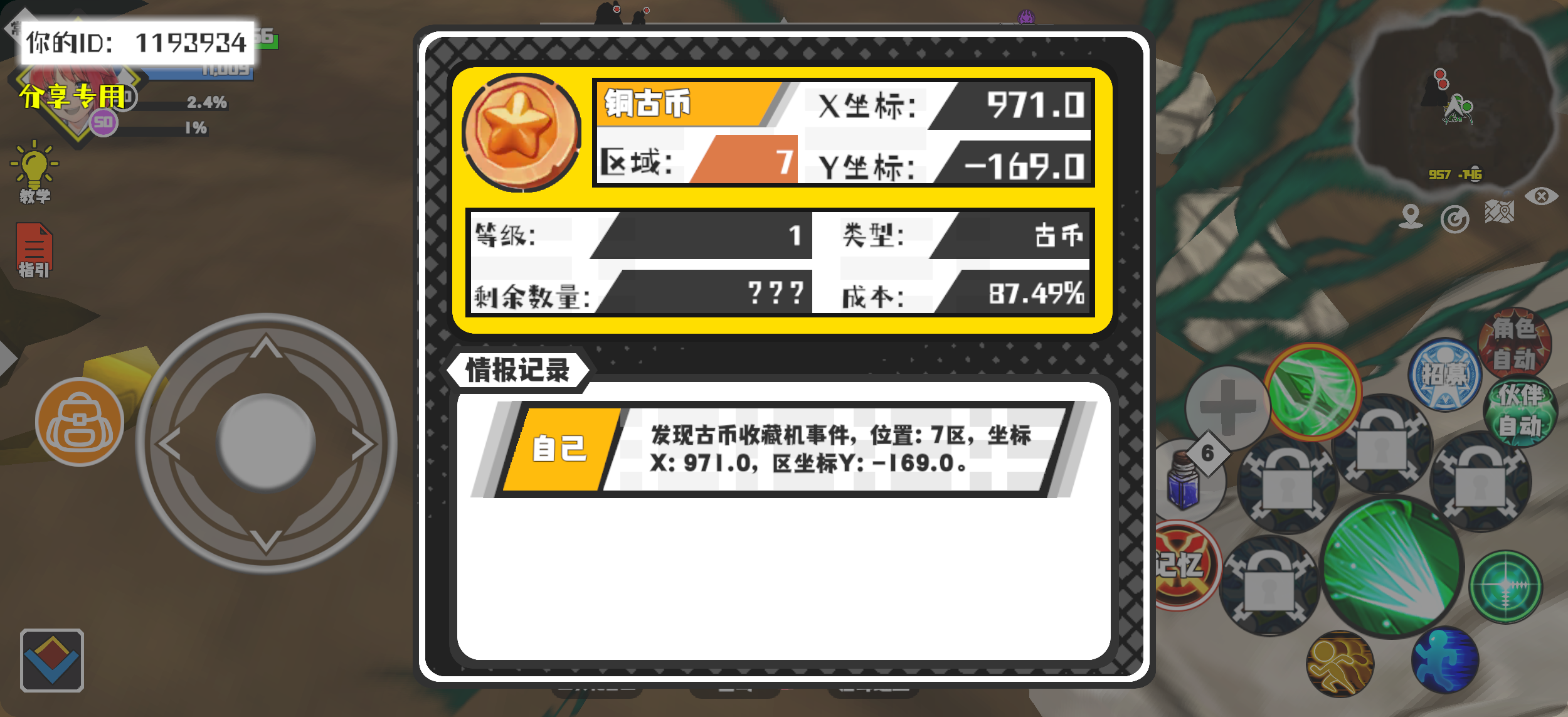 幸运时刻分享! 【古币收藏机】12月6日下午4点 - 铜古币 【7区】 【X:971.0, Y:-169.0】#超数据世界
