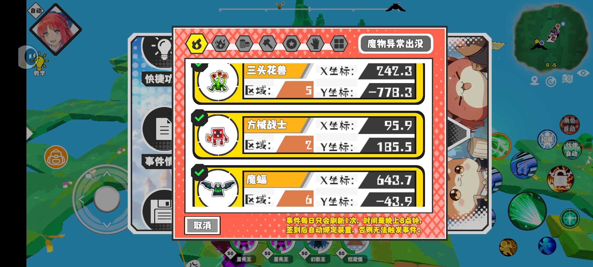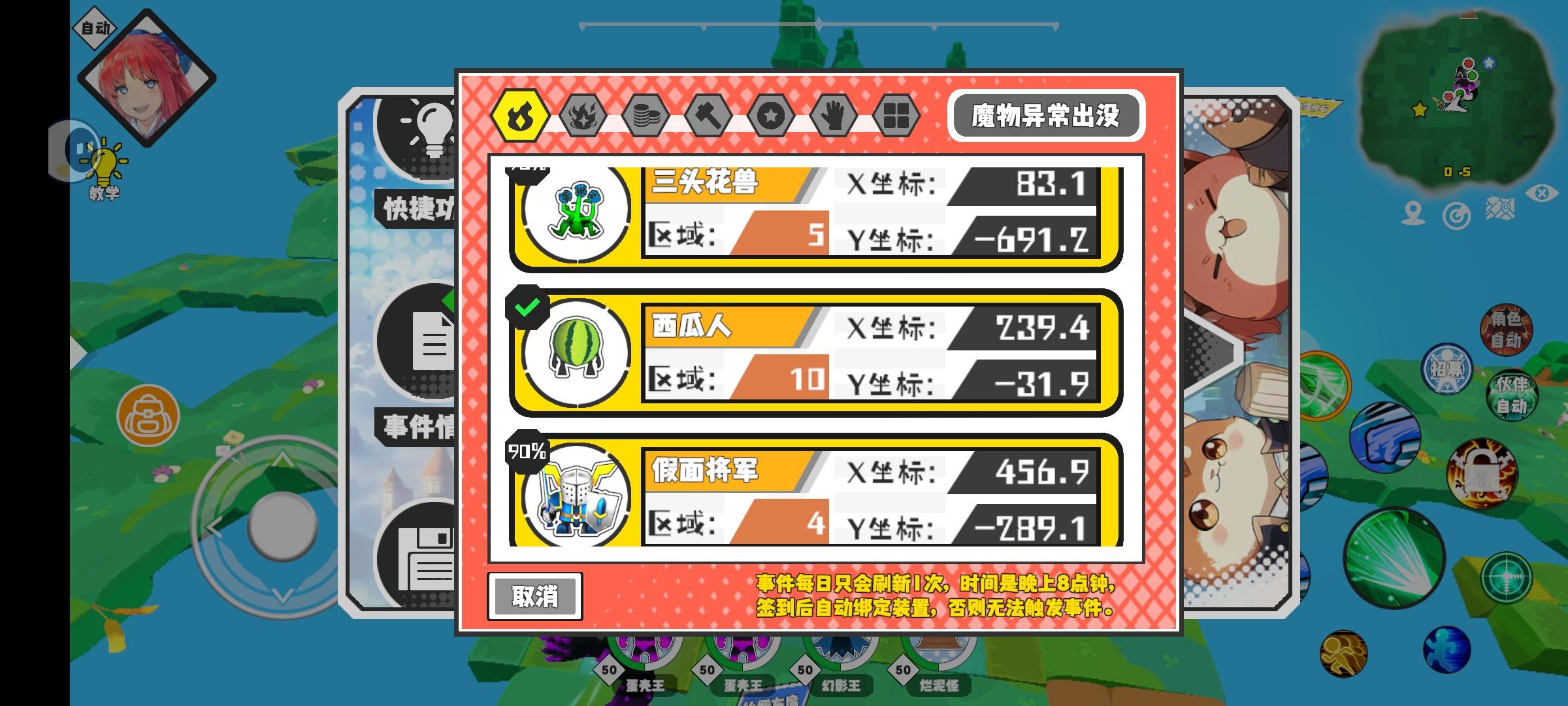 幸运时刻分享! 【魔物异常出没】12月4日下午3点 - 大头兔【强度1】 【3区】 【X:45.8, Y:56.0】#超数据世界