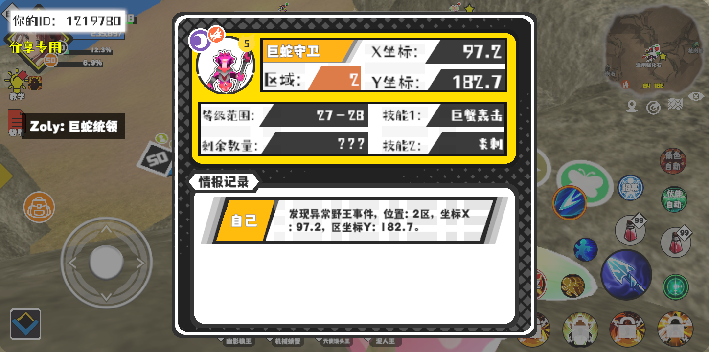 幸运时刻分享! 【野王异常出没】12月5日下午6点 - 巨蛇守卫【强度5】 【2区】 【X:97.2, Y:182.7】#超数据世界