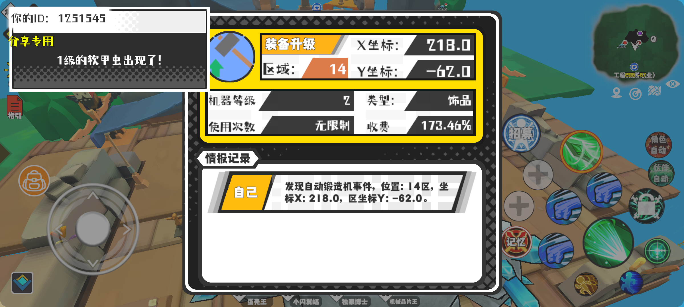 #超数据世界 幸运时刻分享! 【自动锻造机】12月5日下午6点 - 装备升级【2级机器】 【14区】 【X:218.0, Y:-62.0】