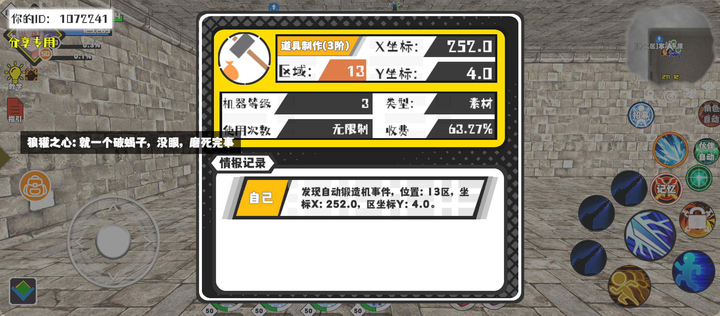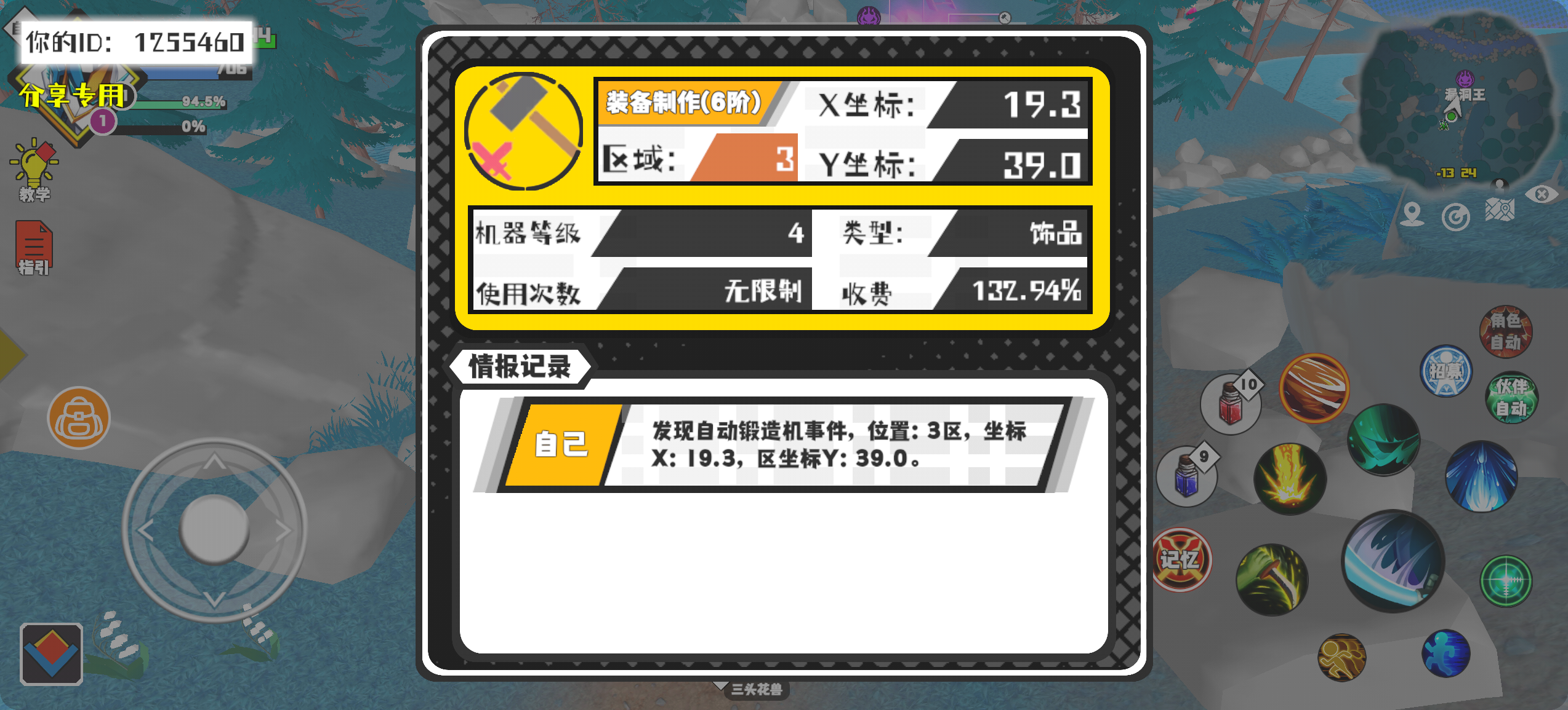 #超数据世界 幸运时刻分享! 【自动锻造机】12月2日下午8点 - 道具制作(3阶)【3级机器】 【13区】 【X:252.0, Y:4.0】