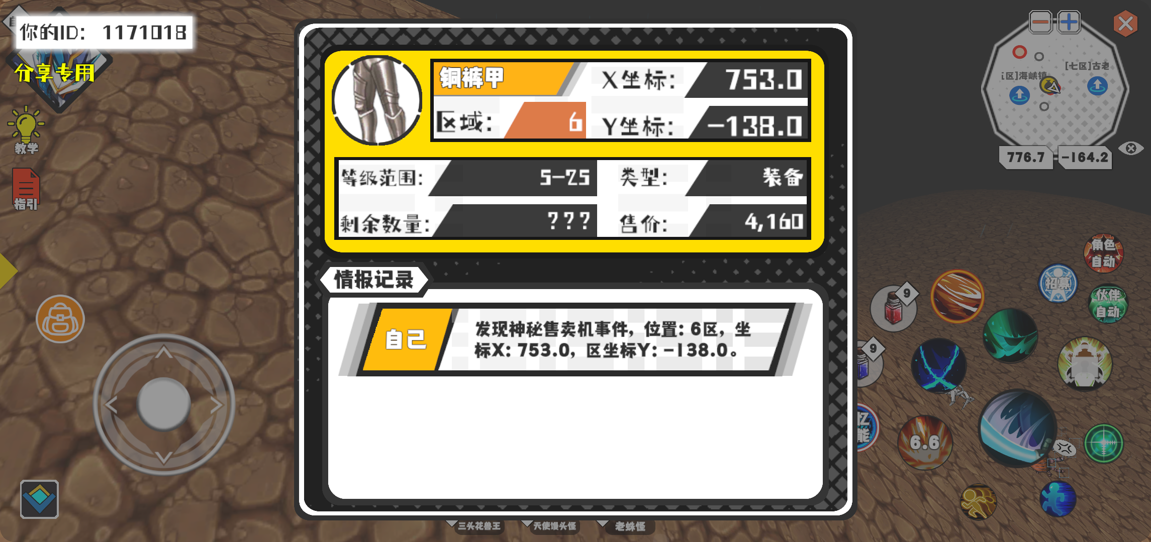 幸运时刻分享! 【神秘售卖机】12月3日上午11点 - 铜裤甲【5-25级 】【稀有度:精良】 【6区】 【X:753.0, Y:-138.0】#超数据世界