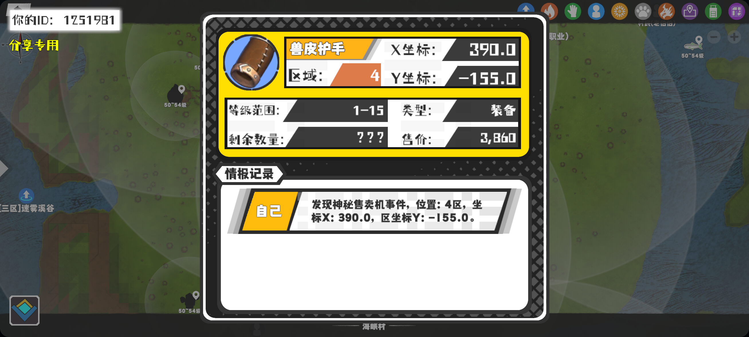 幸运时刻分享! 【神秘售卖机】11月30日下午5点 - 兽皮护手【1-15级 】【稀有度:稀有】 【4区】 【X:390.0, Y:-155.0】#超数据世界