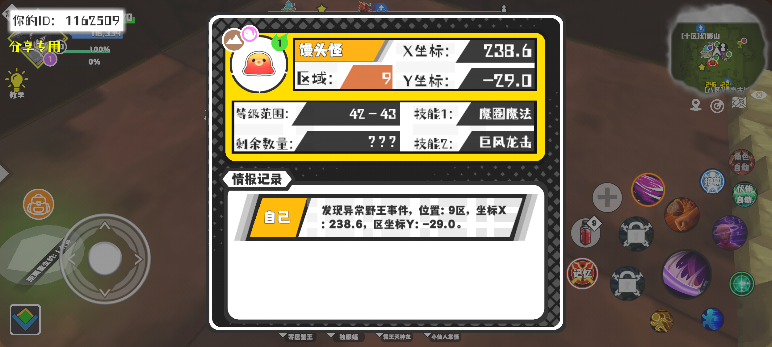 幸运时刻分享! 【野王异常出没】11月30日下午1点 - 馒头怪【强度1】 【9区】 【X:238.6, Y:-29.0】#超数据世界