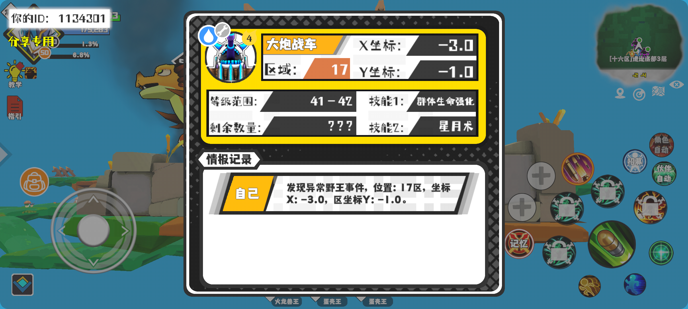 幸运时刻分享! 【野王异常出没】11月29日上午11点 - 大炮战车【强度4】 【17区】 【X:-3.0, Y:-1.0】#超数据世界