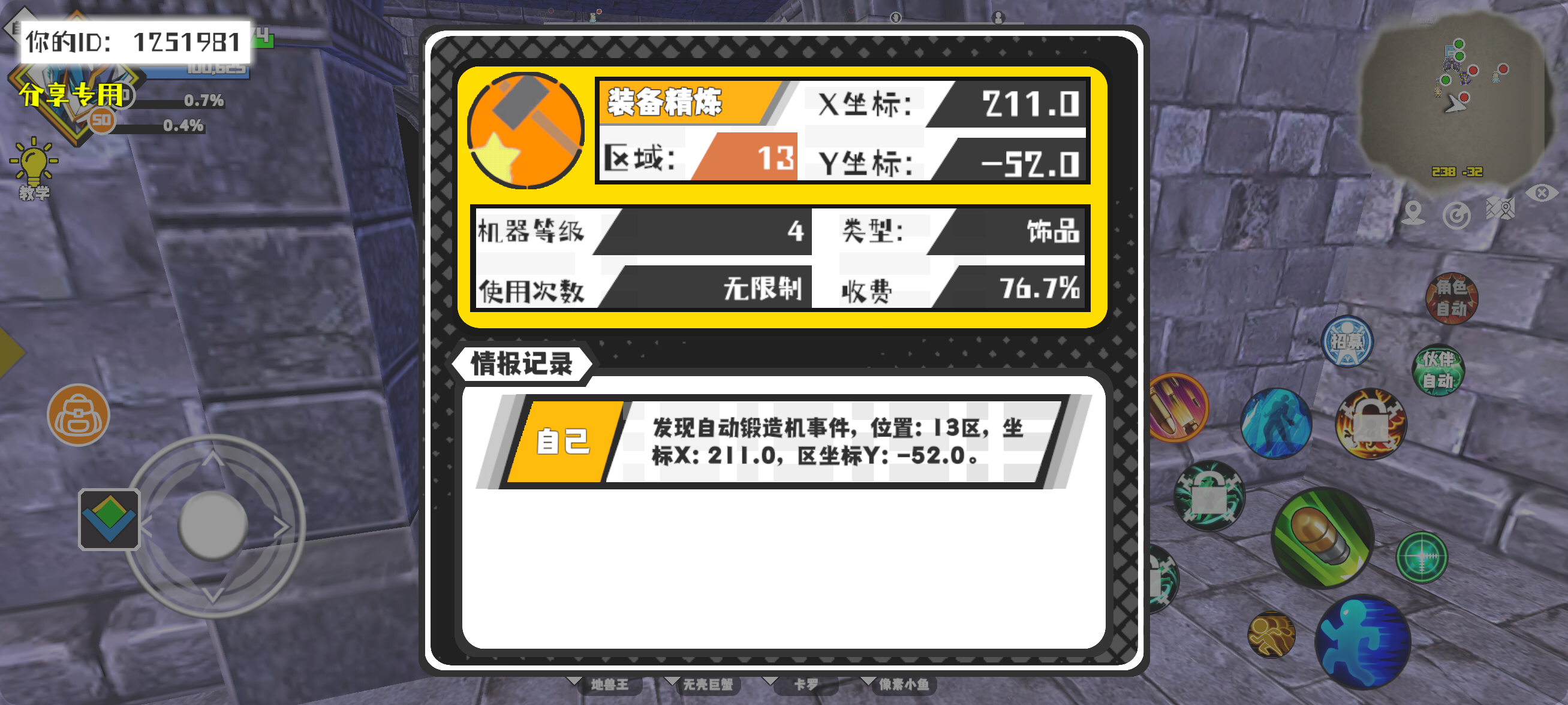 幸运时刻分享! 【自动锻造机】11月29日下午5点 - 装备精炼【4级机器】 【13区】 【X:211.0, Y:-52.0】#超数据世界