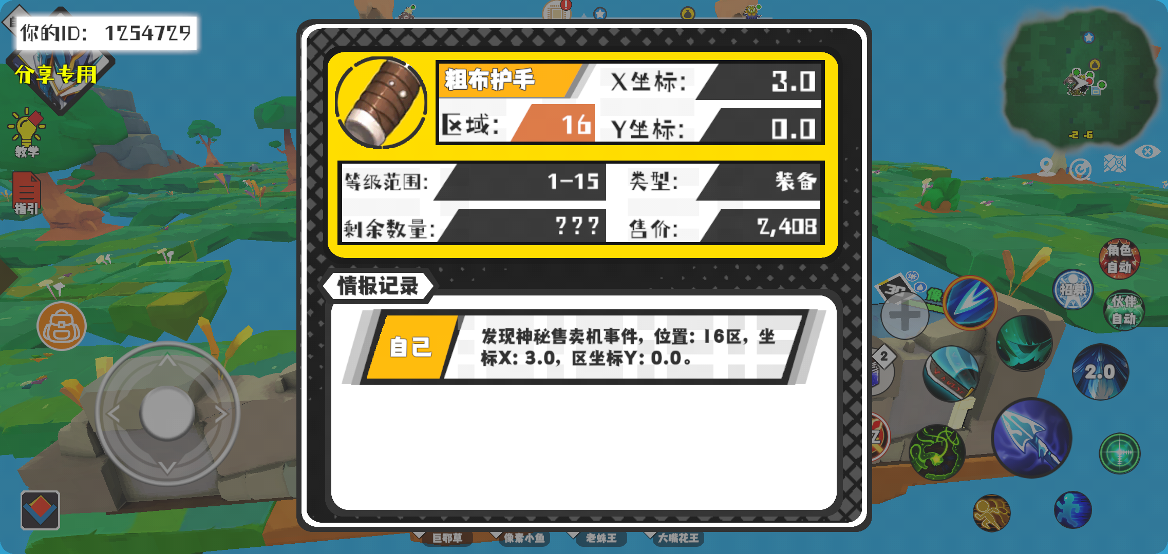 幸运时刻分享! 【神秘售卖机】11月29日下午8点 - 粗布护手【1-15级 】【稀有度:神秘】 【16区】 【X:3.0, Y:0.0】#超数据世界