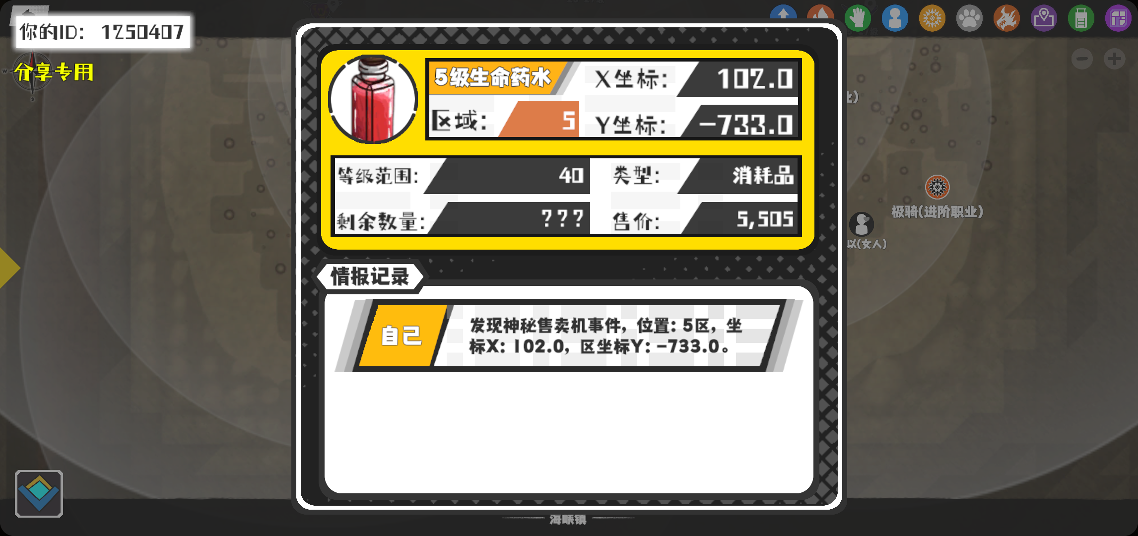 幸运时刻分享! 【神秘售卖机】11月12日下午8点 - 5级生命药水【40级 】【稀有度:传说】 【5区】 【X:102.0, Y:-733.0】#超数据世界
