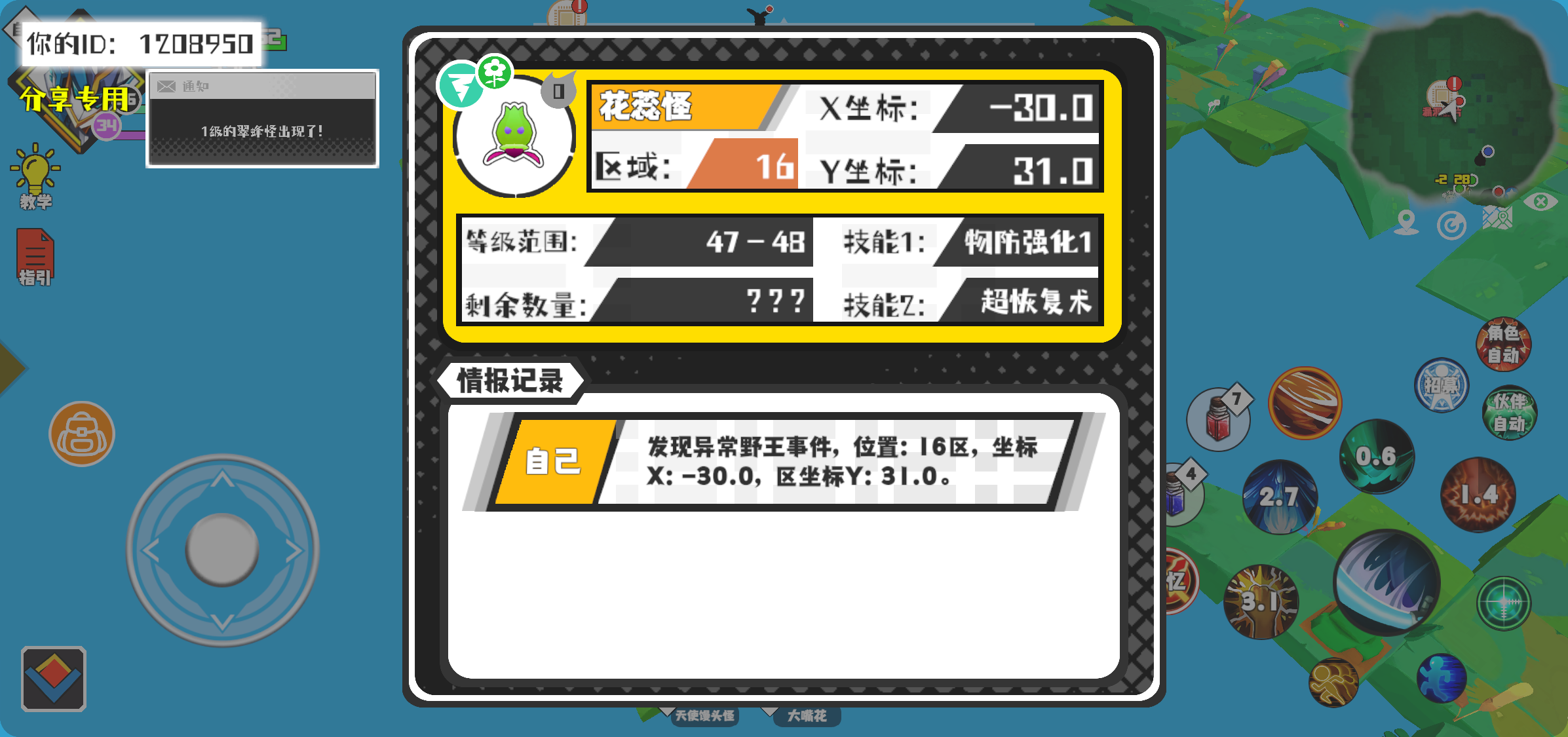 #超数据世界 幸运时刻分享! 【野王异常出没】11月12日下午10点 - 花蕊怪【强度0】 【16区】 【X:-30.0, Y:31.0】