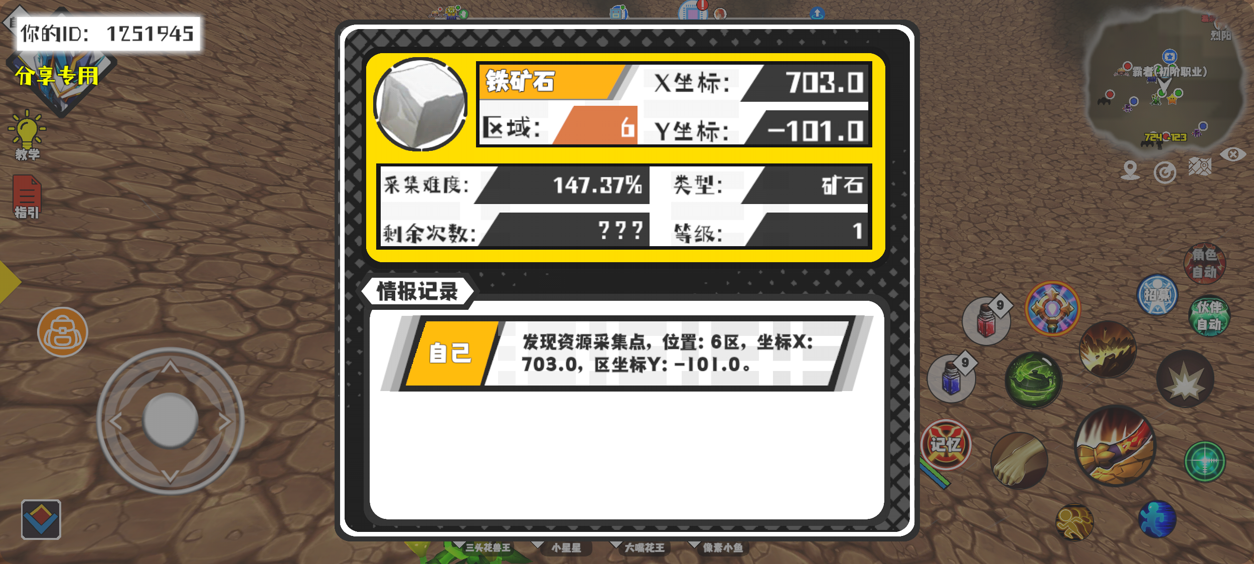 幸运时刻分享! 【资源采集点】11月12日下午1点 - 铁矿石【1级】 【6区】 【X:703.0, Y:-101.0】#超数据世界