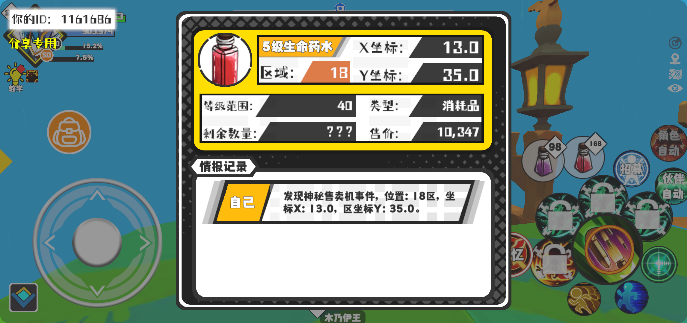 幸运时刻分享! 【神秘售卖机】11月12日下午2点 - 5级生命药水【40级 】【稀有度:稀有】 【18区】 【X:13.0, Y:35.0】#超数据世界