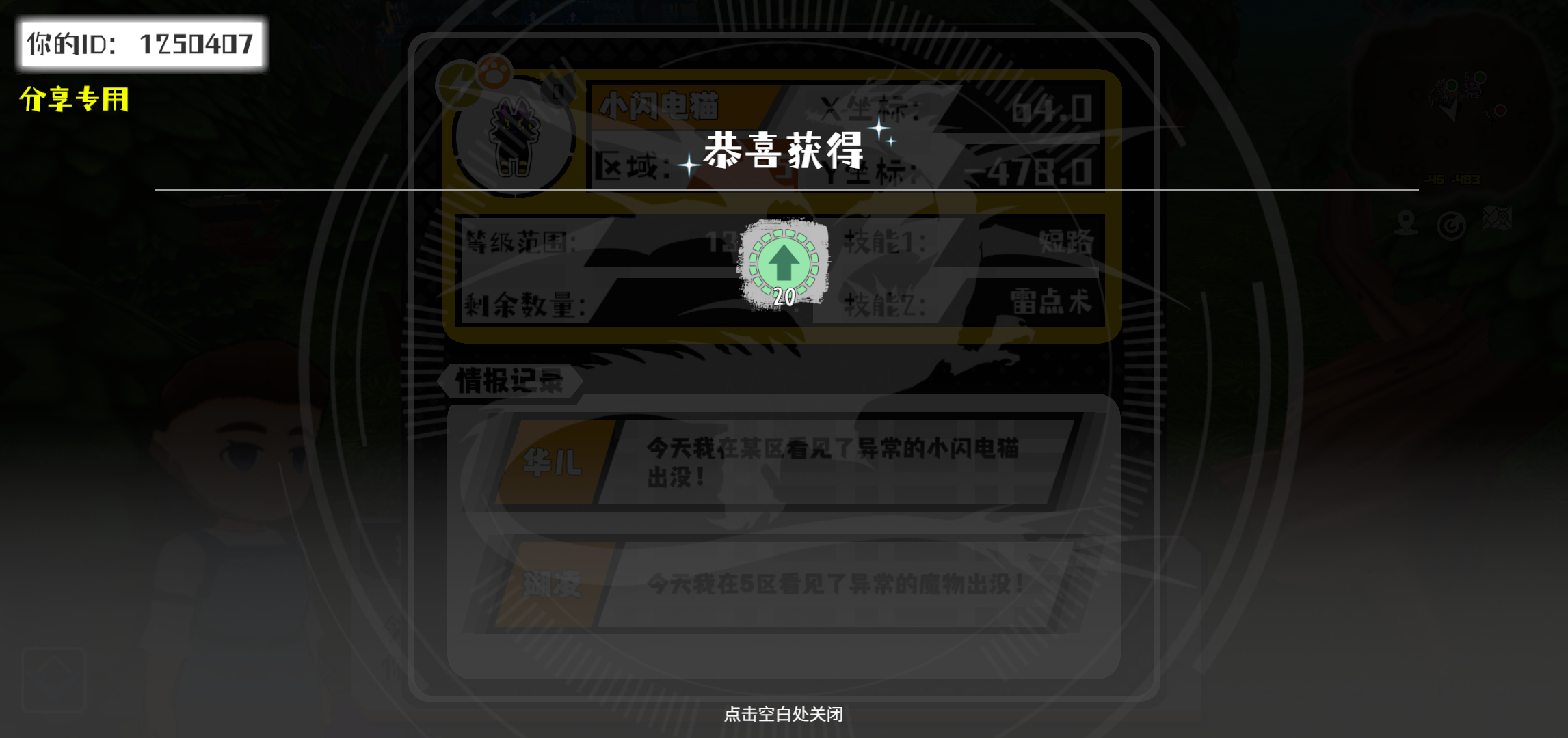 幸运时刻分享! 【魔物异常出没】11月11日下午8点 - 小闪电猫【强度0】 【5区】 【X:64.0, Y:-478.0】#超数据世界