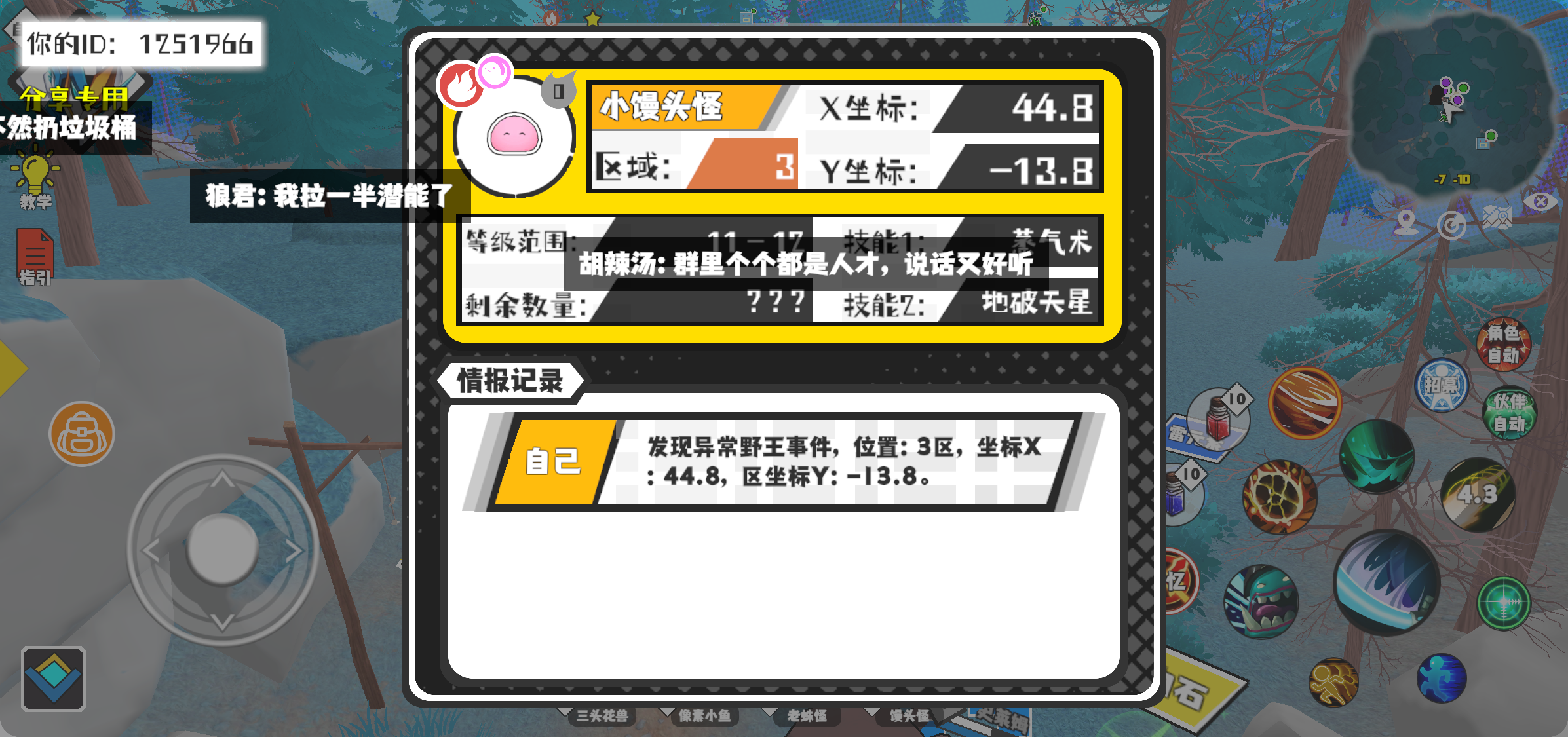 幸运时刻分享! 【野王异常出没】11月11日下午10点 - 小馒头怪【强度0】 【3区】 【X:44.8, Y:-13.8】#超数据世界