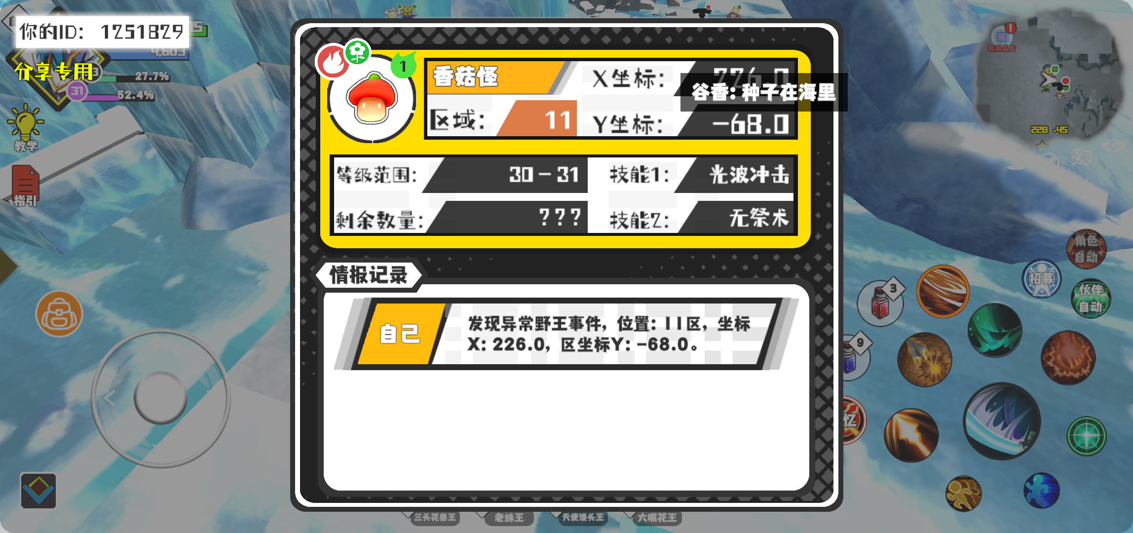 幸运时刻分享! 【野王异常出没】11月12日上午12点 - 香菇怪【强度1】 【11区】 【X:226.0, Y:-68.0】#超数据世界
