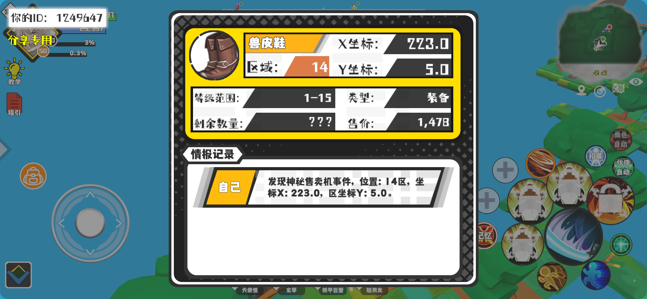 幸运时刻分享! 【神秘售卖机】11月12日上午1点 - 兽皮鞋【1-15级 】【稀有度:精良】 【14区】 【X:223.0, Y:5.0】#超数据世界