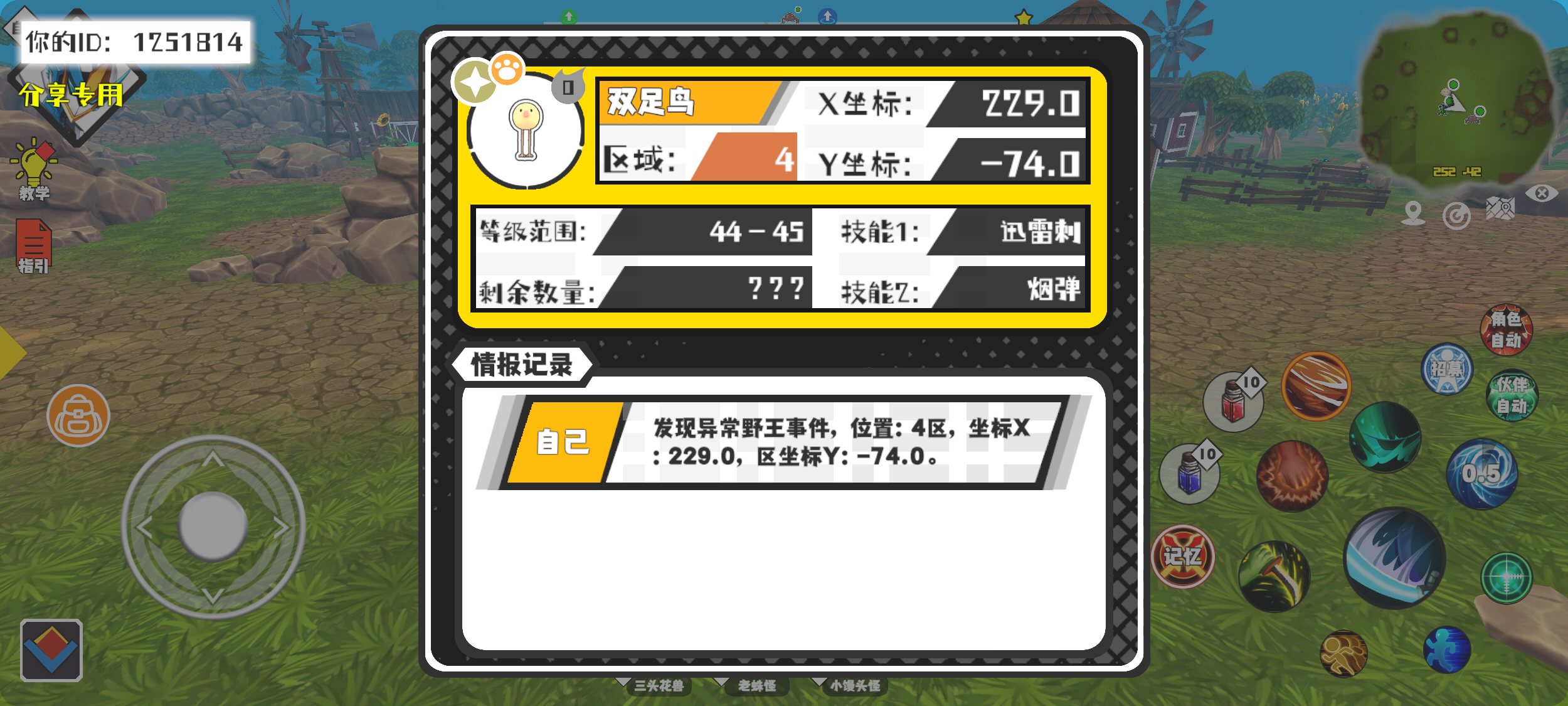 幸运时刻分享! 【野王异常出没】11月10日下午11点 - 双足鸟【强度0】 【4区】 【X:229.0, Y:-74.0】#超数据世界