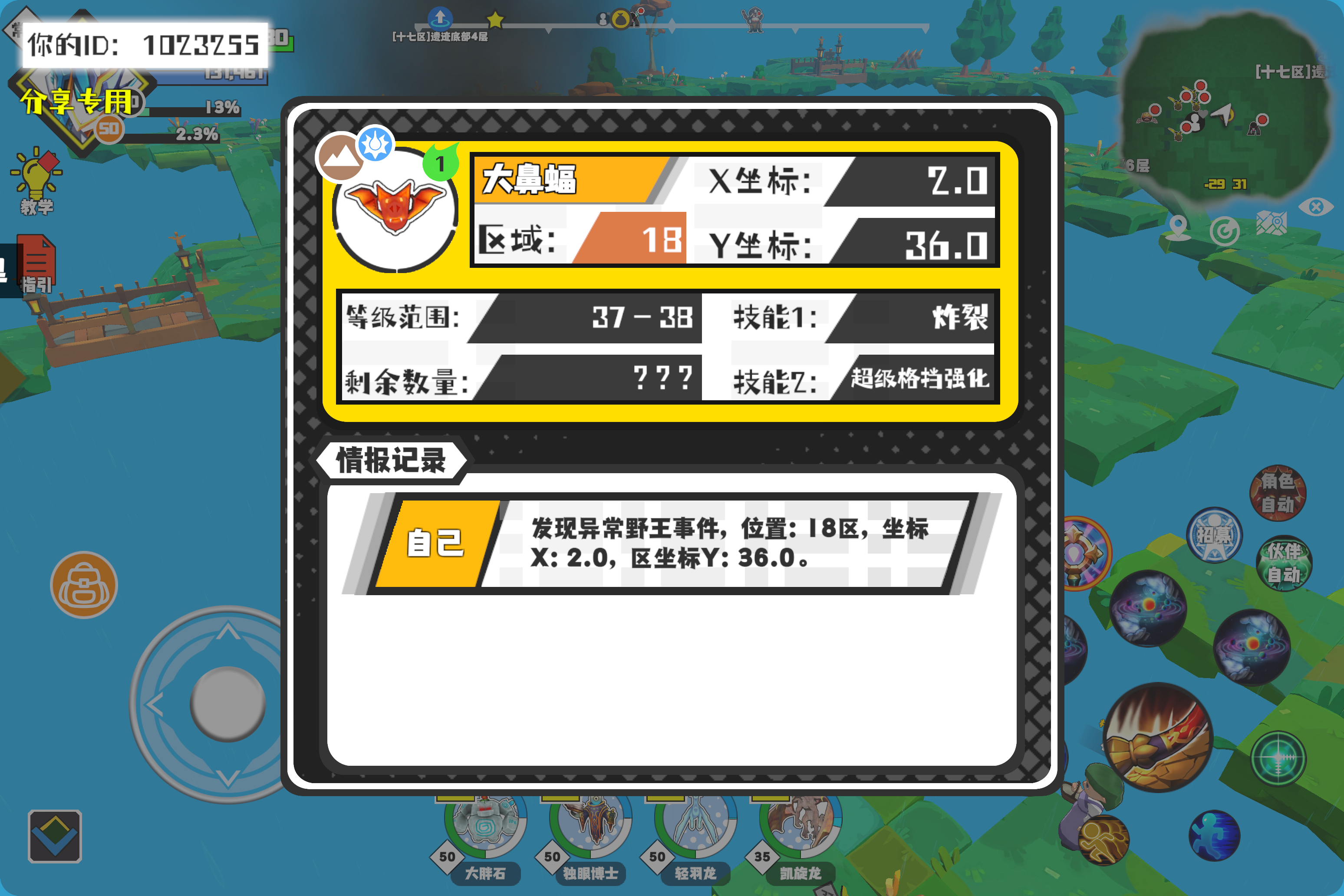幸运时刻分享! 【野王异常出没】11月10日下午7点 - 大鼻蝠【强度1】 【18区】 【X:2.0, Y:36.0】#超数据世界