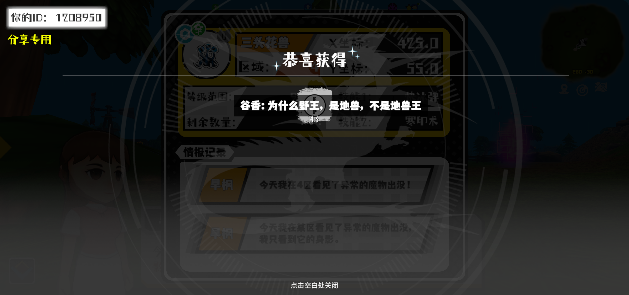 #超数据世界 幸运时刻分享! 【魔物异常出没】11月10日下午8点 - 三头花兽【强度0】 【4区】 【X:425.0, Y:55.0】