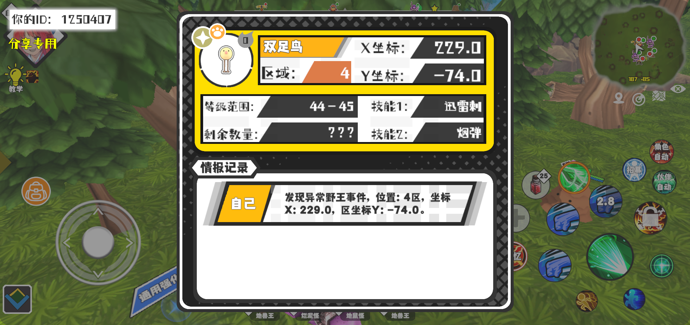 幸运时刻分享! 【野王异常出没】11月10日下午8点 - 双足鸟【强度0】 【4区】 【X:229.0, Y:-74.0】#超数据世界