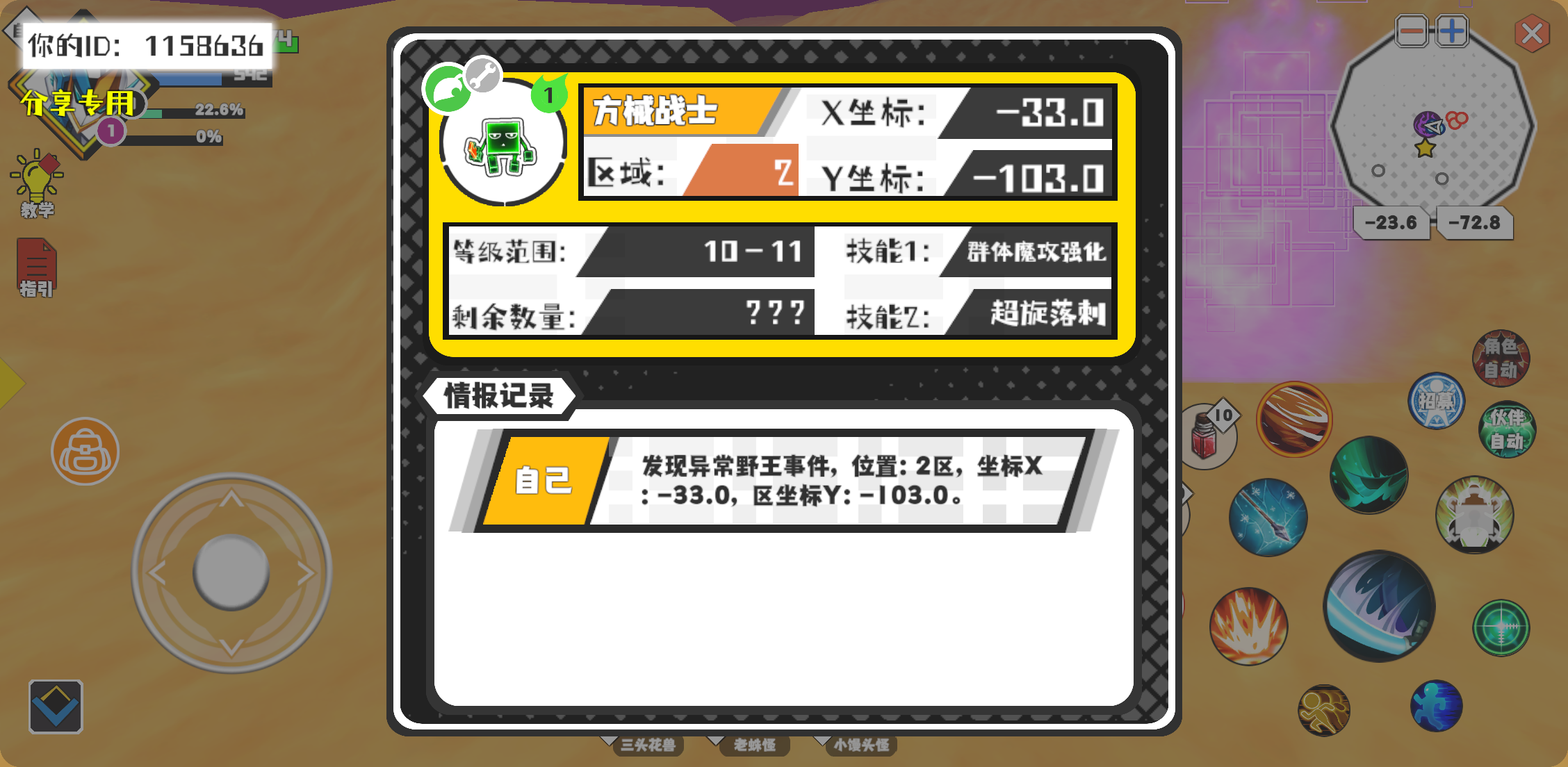 幸运时刻分享! 【野王异常出没】10月29日下午3点 - 方械战士【强度1】 【2区】 【X:-33.0, Y:-103.0】#超数据世界