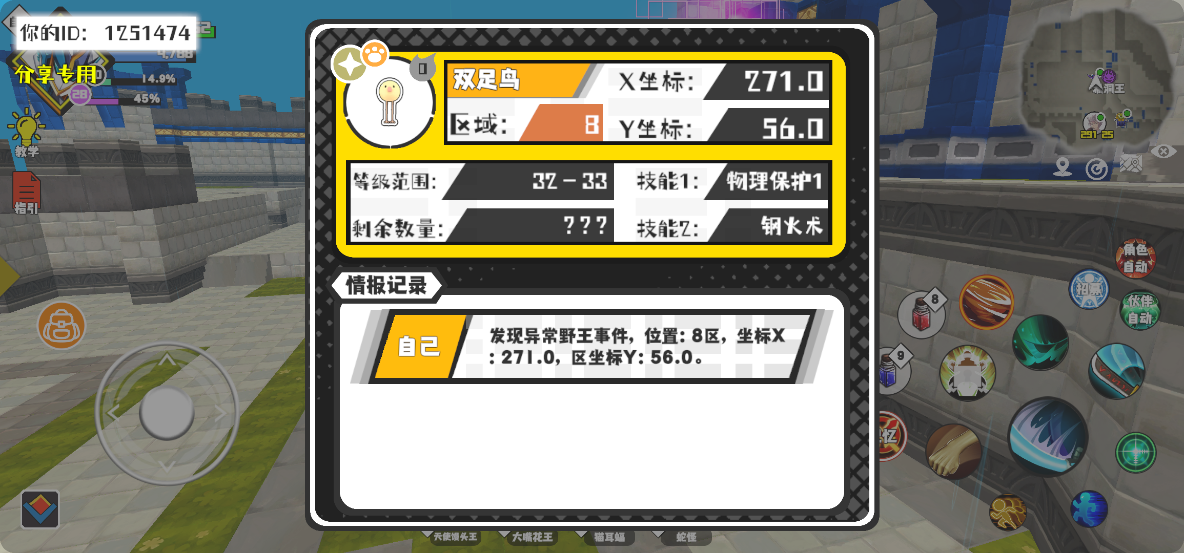 #超数据世界 幸运时刻分享! 【野王异常出没】11月9日下午11点 - 双足鸟【强度0】 【8区】 【X:271.0, Y:56.0】